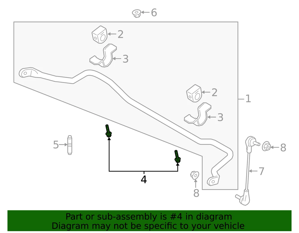 Hiller Parts Department Genuine Ford Stabilizer Bar Bolt W721449-S439 Part can be found as # 4 in the diagram above Product Description Standard stabilizer. Stabilzier bar disconnect. 4wd. Rwd. SOLD IN QUANTITY; 1 Specifications Brand Ford Manufacturer Part Number W721449-S439 SKU -W721449-S439 Product Genuine Ford Stabilizer Bar Bolt W721449-S439 ONLY PART REFERENCE #4 ON THE DIAGRAM IS INCLUDED Terms and Conditions Thank you for shopping with us. Please find our policies below. If you have any other questions, please don't hesitate to contact us. Shipping Terms In stock orders ship within 24 hours. Weekend orders will be processed the next business day. If a part is not in stock and must be ordered from the manufacturer, it usually takes 2-3 days to arrive to us and will be promptly shipped to you. Most of the orders are shipped complete within 2-3 business days. A few of the parts ordered from the manufacturer may take up to 5-6 business days to arrive and will shipped to you immediately. Depending upon location, ground shipments usually take 2-7 days. Your order may be shipped Overnight for an additional cost. Oversized shipments will be additional; you will be contacted prior to shipping for approval. We cannot guarantee transit times for ground and oversize orders. Shipping Carrier substitutions may be made at our determination in an attempt to reduce shipping cost to the customer. In the unlikely event that a part has been placed on backorder or discontinued, we will do our best to try and find one for you as quickly as possible We do not ship COD orders. Return Policy Contact us to arrange for any returns. A copy of the invoice will need to be included with the return. Parts must be resaleable and in the original packaging. 20% restocking fee may be charged, if the return item is used or not sellable. We cannot take back used parts. We cannot take back installed or tried parts. Electrical parts are not returnable. We do reserve the right to refuse and return any parts we find have been installed, are used or do not meet the above criteria. Return request need to be within 30 days of receipt. Cancellation Policy An order or a portion of an order may be cancelled up until the time it is shipped and no longer in our possession. Home • Newsletter Signup • Contact Us Copyright © 2026 Hiller Parts Department , All rights reserved. Solution by RevolutionParts, Inc. :: Design by OCDesignsOnline