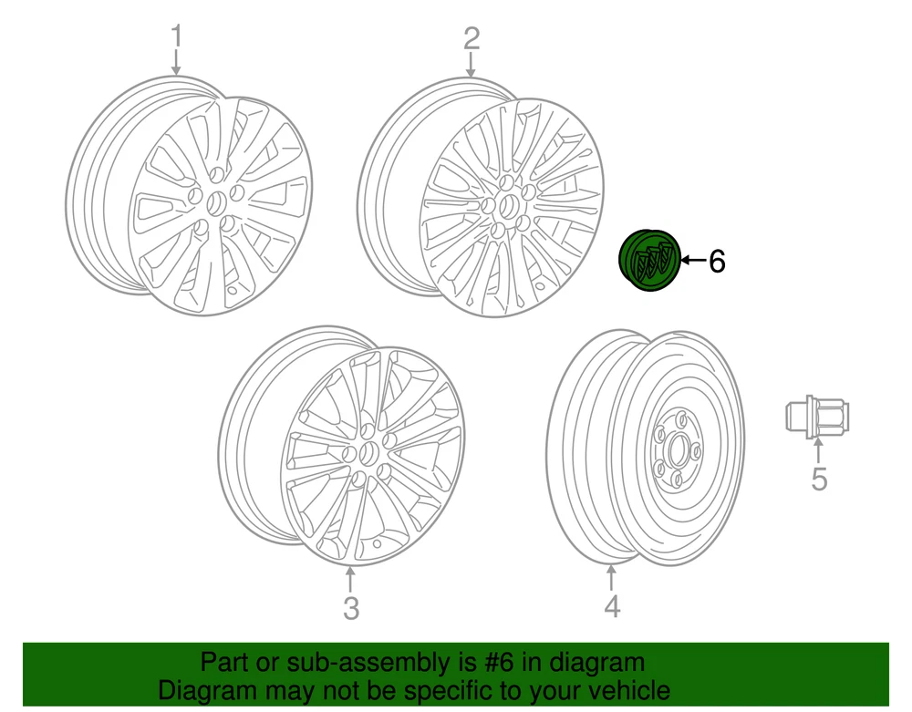 aaronchevrolet Genuine GM Button Style Center Cap with Tri-Shield Logo 09597714 Part can be found as # 6 in the diagram above Product Description Chrome. Helps protect your vehicle's wheel hub, cv shaft (if equipped), and wheel fasteners from dust and moisture Helps enhance vehicle appearance This GM Genuine Part is designed, engineered, and tested to rigorous standards and is backed by General Motors Specifications Brand GM Manufacturer Part Number 09597714 SKU 09597714 Product Genuine GM Button Style Center Cap with Tri-Shield Logo 09597714 ONLY PART REFERENCE #6 ON THE DIAGRAM IS INCLUDED WARNING : May cause cancer and reproductive harm. See www.P65Warnings.ca.gov for more info. Terms and Conditions Thank you for shopping with us. Please find our policies below. If you have any other questions, please don't hesitate to contact us. Shipping Terms If you are located in Alaska, Hawaii or Puerto Rico Please contact us via eBay email to discuss shipping cost In stock orders ship within 24 hours. Weekend orders will be processed the next business day. If a part is not in stock and must be ordered from the manufacturer, it usually takes 2-3 days to arrive to us and will be promptly shipped to you. Most of the orders are shipped complete within 2-3 business days. A few of the parts ordered from the manufacturer may take up to 5-6 business days to arrive and will shipped to you immediately. Depending upon location, ground shipments usually take 2-7 days. Your order may be shipped Overnight for an additional cost. Oversized shipments will be additional; you will be contacted prior to shipping for approval. We cannot guarantee transit times for ground and oversize orders. Shipping Carrier substitutions may be made at our determination in an attempt to reduce shipping cost to the customer. We do not ship internationally. In the unlikely event that a part has been placed on backorder or discontinued, we will do our best to try and find one for you as quickly as possible. We do not ship COD orders. Return Policy Contact us to arrange for any returns. A copy of the invoice will need to be included with the return. Parts must be resaleable and in the original packaging. We cannot take back used parts. We cannot take back installed or tried parts. Electrical parts are not returnable. We do reserve the right to refuse and return any parts we find have been installed, are used or do not meet the above criteria. Return request need to be within 30 days of receipt. Cancellation Policy An order or a portion of an order may be cancelled up until the time it is shipped and no longer in our possession. Home • Newsletter Signup • Contact Us Copyright © 2025 aaronchevrolet , All rights reserved. Solution by RevolutionParts, Inc. :: Design by OCDesignsOnline