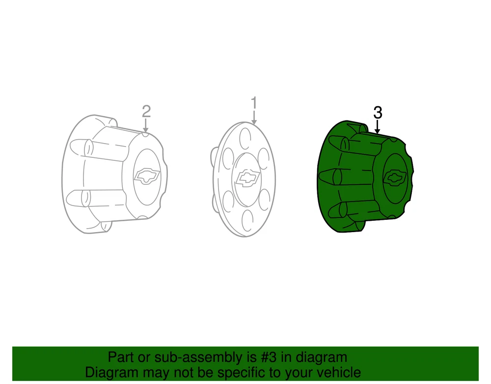 aaronchevrolet Genuine GM Center Cap with Bowtie Logo 09597161 Part can be found as # 3 in the diagram above Product Description Chevrolet, steel wheel, 8 lug, without chrome. Hub cap, 8 lug, code: qc1 painted. Chevrolet, 3/4 & 1 ton, steel wheel, without dual rear wheels, without chrome. , chevrolet, type 1, code: qb5. Helps protect your vehicle's wheel hub, cv shaft (if equipped), and wheel fasteners from dust and moisture Helps enhance vehicle appearance This GM Genuine Part is designed, engineered, and tested to rigorous standards and is backed by General Motors Specifications Brand GM Manufacturer Part Number 09597161 SKU 09597161 Product Genuine GM Center Cap with Bowtie Logo 09597161 Replaces 15052378, 15712375 ONLY PART REFERENCE #3 ON THE DIAGRAM IS INCLUDED WARNING : May cause cancer and reproductive harm. See www.P65Warnings.ca.gov for more info. Terms and Conditions Thank you for shopping with us. Please find our policies below. If you have any other questions, please don't hesitate to contact us. Shipping Terms If you are located in Alaska, Hawaii or Puerto Rico Please contact us via eBay email to discuss shipping cost In stock orders ship within 24 hours. Weekend orders will be processed the next business day. If a part is not in stock and must be ordered from the manufacturer, it usually takes 2-3 days to arrive to us and will be promptly shipped to you. Most of the orders are shipped complete within 2-3 business days. A few of the parts ordered from the manufacturer may take up to 5-6 business days to arrive and will shipped to you immediately. Depending upon location, ground shipments usually take 2-7 days. Your order may be shipped Overnight for an additional cost. Oversized shipments will be additional; you will be contacted prior to shipping for approval. We cannot guarantee transit times for ground and oversize orders. Shipping Carrier substitutions may be made at our determination in an attempt to reduce shipping cost to the customer. We do not ship internationally. In the unlikely event that a part has been placed on backorder or discontinued, we will do our best to try and find one for you as quickly as possible. We do not ship COD orders. Return Policy Contact us to arrange for any returns. A copy of the invoice will need to be included with the return. Parts must be resaleable and in the original packaging. We cannot take back used parts. We cannot take back installed or tried parts. Electrical parts are not returnable. We do reserve the right to refuse and return any parts we find have been installed, are used or do not meet the above criteria. Return request need to be within 30 days of receipt. Cancellation Policy An order or a portion of an order may be cancelled up until the time it is shipped and no longer in our possession. Home • Newsletter Signup • Contact Us Copyright © 2025 aaronchevrolet , All rights reserved. Solution by RevolutionParts, Inc. :: Design by OCDesignsOnline