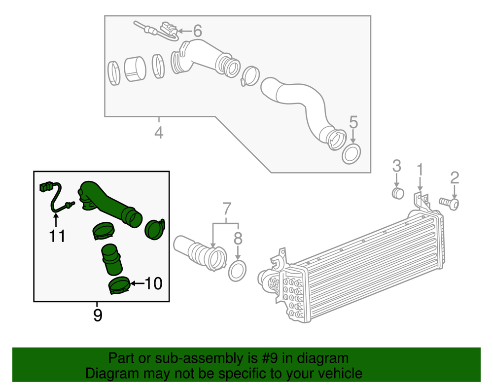 aaronchevrolet Genuine GM Charge Air Cooler Inlet Duct 84784913 Part can be found as # 9 in the diagram above Product Description 2.8L turbo diesel. Inlet tube. This GM Genuine Part is designed, engineered, and tested to rigorous standards and is backed by General Motors Specifications Brand GM Manufacturer Part Number 84784913 SKU 84784913 Product Genuine GM Charge Air Cooler Inlet Duct 84784913 Replaces 23380486, 23421632, 84079831, 84488137 ONLY PART REFERENCE #9 ON THE DIAGRAM IS INCLUDED WARNING : May cause cancer and reproductive harm. See www.P65Warnings.ca.gov for more info. Terms and Conditions Thank you for shopping with us. Please find our policies below. If you have any other questions, please don't hesitate to contact us. Shipping Terms If you are located in Alaska, Hawaii or Puerto Rico Please contact us via eBay email to discuss shipping cost In stock orders ship within 24 hours. Weekend orders will be processed the next business day. If a part is not in stock and must be ordered from the manufacturer, it usually takes 2-3 days to arrive to us and will be promptly shipped to you. Most of the orders are shipped complete within 2-3 business days. A few of the parts ordered from the manufacturer may take up to 5-6 business days to arrive and will shipped to you immediately. Depending upon location, ground shipments usually take 2-7 days. Your order may be shipped Overnight for an additional cost. Oversized shipments will be additional; you will be contacted prior to shipping for approval. We cannot guarantee transit times for ground and oversize orders. Shipping Carrier substitutions may be made at our determination in an attempt to reduce shipping cost to the customer. We do not ship internationally. In the unlikely event that a part has been placed on backorder or discontinued, we will do our best to try and find one for you as quickly as possible. We do not ship COD orders. Return Policy Contact us to arrange for any returns. A copy of the invoice will need to be included with the return. Parts must be resaleable and in the original packaging. We cannot take back used parts. We cannot take back installed or tried parts. Electrical parts are not returnable. We do reserve the right to refuse and return any parts we find have been installed, are used or do not meet the above criteria. Return request need to be within 30 days of receipt. All returns are subject to inspection Shipping cost will not be refunded Cancellation Policy An order or a portion of an order may be cancelled up until the time it is shipped and no longer in our possession. Home • Newsletter Signup • Contact Us Copyright © 2025 aaronchevrolet , All rights reserved. Solution by RevolutionParts, Inc. :: Design by OCDesignsOnline