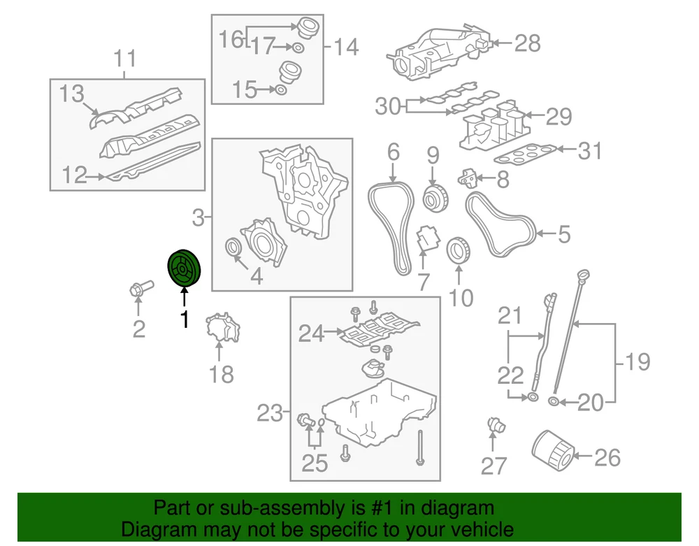aaronchevrolet Genuine GM Crankshaft Balancer 12697768 Part can be found as # 1 in the diagram above Product Description This GM Genuine Part is designed, engineered, and tested to rigorous standards and is backed by General Motors . Specifications Brand GM Manufacturer Part Number 12697768 SKU 12697768 Product Genuine GM Crankshaft Balancer 12697768 Replaces 12603181, 12626355, 12674685 ONLY PART REFERENCE #1 ON THE DIAGRAM IS INCLUDED WARNING : May cause cancer and reproductive harm. See www.P65Warnings.ca.gov for more info. Terms and Conditions Thank you for shopping with us. Please find our policies below. If you have any other questions, please don't hesitate to contact us. Shipping Terms If you are located in Alaska, Hawaii or Puerto Rico Please contact us via eBay email to discuss shipping cost In stock orders ship within 24 hours. Weekend orders will be processed the next business day. If a part is not in stock and must be ordered from the manufacturer, it usually takes 2-3 days to arrive to us and will be promptly shipped to you. Most of the orders are shipped complete within 2-3 business days. A few of the parts ordered from the manufacturer may take up to 5-6 business days to arrive and will shipped to you immediately. Depending upon location, ground shipments usually take 2-7 days. Your order may be shipped Overnight for an additional cost. Oversized shipments will be additional; you will be contacted prior to shipping for approval. We cannot guarantee transit times for ground and oversize orders. Shipping Carrier substitutions may be made at our determination in an attempt to reduce shipping cost to the customer. We do not ship internationally. In the unlikely event that a part has been placed on backorder or discontinued, we will do our best to try and find one for you as quickly as possible. We do not ship COD orders. Return Policy Contact us to arrange for any returns. A copy of the invoice will need to be included with the return. Parts must be resaleable and in the original packaging. We cannot take back used parts. We cannot take back installed or tried parts. Electrical parts are not returnable. We do reserve the right to refuse and return any parts we find have been installed, are used or do not meet the above criteria. Return request need to be within 30 days of receipt. Cancellation Policy An order or a portion of an order may be cancelled up until the time it is shipped and no longer in our possession. Home • Newsletter Signup • Contact Us Copyright © 2025 aaronchevrolet , All rights reserved. Solution by RevolutionParts, Inc. :: Design by OCDesignsOnline
