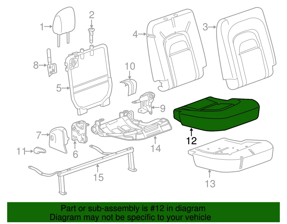 VRAY-GMC Genuine GM Cushion Cover 23455901 Part can be found as # 12 in the diagram above Product Description Crew cab, 40% side, Canyon, cloth, gray. Specifications Brand GM Manufacturer Part Number 23455901 SKU 23455901 Product Genuine GM Cushion Cover 23455901 ONLY PART REFERENCE #12 ON THE DIAGRAM IS INCLUDED WARNING : May cause cancer and reproductive harm. See www.P65Warnings.ca.gov for more info. Terms and Conditions Thank you for shopping with us. Please find our policies below. If you have any other questions, please don't hesitate to contact us. Shipping Terms In stock orders ship within 24 hours. Weekend orders will be processed the next business day. If a part is not in stock and must be ordered from the manufacturer, it usually takes 2-3 days to arrive to us and will be promptly shipped to you. Most of the orders are shipped complete within 2-3 business days. A few of the parts ordered from the manufacturer may take up to 5-6 business days to arrive and will shipped to you immediately. Depending upon location, ground shipments usually take 2-7 days. Your order may be shipped Overnight for an additional cost. Oversized shipments will be additional; you will be contacted prior to shipping for approval. We cannot guarantee transit times for ground and oversize orders. Shipping Carrier substitutions may be made at our determination in an attempt to reduce shipping cost to the customer. We do not ship internationally. In the unlikely event that a part has been placed on backorder or discontinued, we will do our best to try and find one for you as quickly as possible. We do not ship COD orders. Return Policy Contact us to arrange for any returns. A copy of the invoice will need to be included with the return. Parts must be resaleable and in the original packaging. We cannot take back used parts. We cannot take back installed or tried parts. Electrical parts are not returnable. We do reserve the right to refuse and return any parts we find have been installed, are used or do not meet the above criteria. Return request need to be within 30 days of receipt. Cancellation Policy An order or a portion of an order may be cancelled up until the time it is shipped and no longer in our possession. Home • Newsletter Signup • Contact Us Copyright © 2024 VRAY-GMC , All rights reserved. Solution by RevolutionParts, Inc. :: Design by OCDesignsOnline