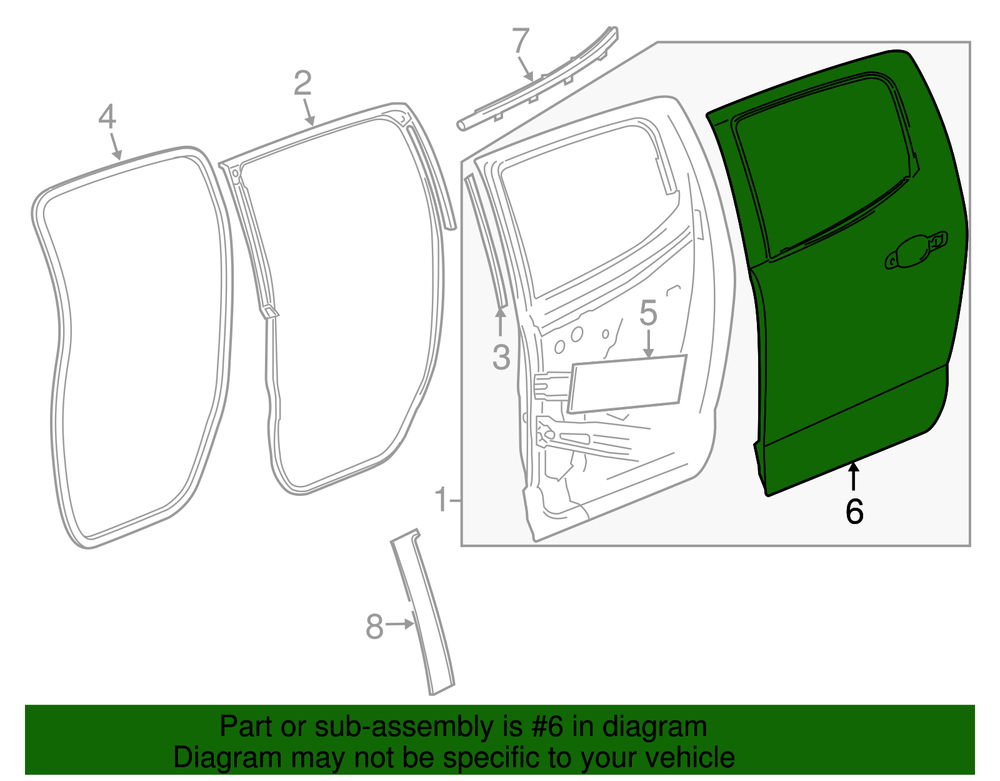 World Parts Direct Genuine GM Rear Driver Side Door Outer Panel 23360178 Part can be found as # 6 in the diagram above Product Description Crew cab. Helps provide a finishing touch to the vehicle's exterior This GM Genuine Part is designed, engineered, and tested to rigorous standards and is backed by General Motors . Collision parts are designed to help promote proper and safe repair Specifications Brand GM Manufacturer Part Number 23360178 SKU 23360178 Product Genuine GM Rear Driver Side Door Outer Panel 23360178 Replaces 52022972 ONLY PART REFERENCE #6 ON THE DIAGRAM IS INCLUDED About Us WorldPartsDirect is a small, Texas based business located in the Dallas metroplex. There are about twenty of us that work tirelessly to get you the genuine, OEM parts you need at unbeatable prices. We pride ourselves in top quality customer service and our commitment to be the business we would want to shop with. We have one of the largest inventory networks in the country along with some of the most aggressive discounts. We love cars, and we love what we do! We hope you will love shopping with us , and we always welcome feedback on how we can make your shopping experience even better. Terms and Conditions Compatibility Guarantee (optional free service): Applies when you include your VIN during or before checkout. Simply click "Message to Seller" during checkout and include your VIN with any relevant details (ex: driver/ passenger side). Our fitment experts will confirm compatibility before shipping. If we determine that you purchased an incompatible part, we will correct your order if possible. If we cannot correct your order, we will notify you of the issue (ex: discontinued item) and give you the option to cancel. Part Authenticity and Warranty Guarantee: When you order from us, we guarantee that you will receive a genuine, OEM part. We do not stock anything aftermarket! Our parts are warrantied nationwide for 1 year at every Mopar (Chrysler/Dodge/Jeep/Ram) or General Motors (Chevrolet/Buick/GM/GMC) dealer in the country, depending on the brand of part you ordered. We are able to provide documentation that proves the validity of your purchase from our licensed dealership at anytime upon request. This documentation can be used to redeem this warranty if needed at the dealership of your choice and at no cost to you. Return Policy All of our products can be returned within 30 days. Please open a request for any of these reasons: Doesn't Fit Changed My Mind Found a Better Price Just Didn't Like it Ordered by Mistake The reason you pick has no impact on your refund amount, but it has a big impact on us as a seller. Choosing other reasons may delay the refund per an internal investigation and potential eBay appeal. If a part fails at anytime during the 1 year warranty period, any licensed new car dealership in the country that carries your brand of vehicle will replace the part for free. Simply request our dealer invoice for the part and provide it to your preferred dealer along with the defective part. Home • Newsletter Signup • Contact Us Copyright © 2025 World Parts Direct , All rights reserved. Solution by RevolutionParts, Inc. :: Design by OCDesignsOnline