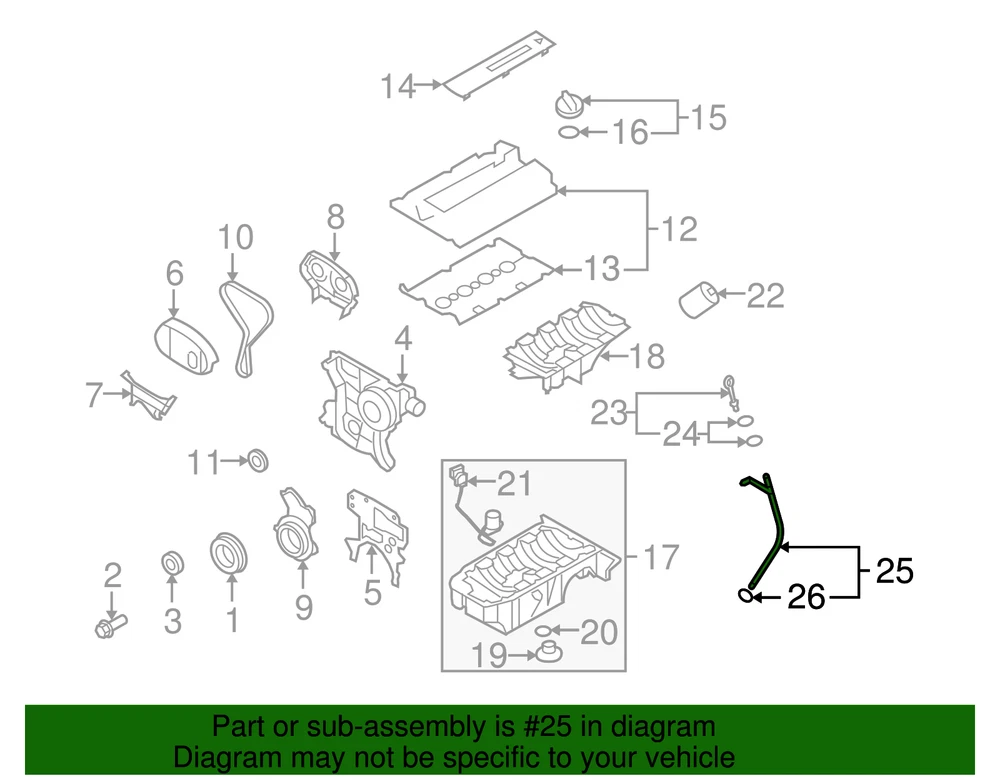 aaronchevrolet Genuine GM Engine Oil Dipstick Tube 55566674 Part can be found as # 25 in the diagram above Product Description 1.8L. 2009-11. This GM Genuine Part is designed, engineered, and tested to rigorous standards and is backed by General Motors Original equipment parts are designed to work with your GM vehicle safety systems -- aftermarket replacement parts may not meet the same OE safety regulations, depending on the part type Specifications Brand GM Manufacturer Part Number 55566674 SKU 55566674 Product Genuine GM Engine Oil Dipstick Tube 55566674 ONLY PART REFERENCE #25 ON THE DIAGRAM IS INCLUDED WARNING : May cause cancer and reproductive harm. See www.P65Warnings.ca.gov for more info. Terms and Conditions Thank you for shopping with us. Please find our policies below. If you have any other questions, please don't hesitate to contact us. Shipping Terms If you are located in Alaska, Hawaii or Puerto Rico Please contact us via eBay email to discuss shipping cost In stock orders ship within 24 hours. Weekend orders will be processed the next business day. If a part is not in stock and must be ordered from the manufacturer, it usually takes 2-3 days to arrive to us and will be promptly shipped to you. Most of the orders are shipped complete within 2-3 business days. A few of the parts ordered from the manufacturer may take up to 5-6 business days to arrive and will shipped to you immediately. Depending upon location, ground shipments usually take 2-7 days. Your order may be shipped Overnight for an additional cost. Oversized shipments will be additional; you will be contacted prior to shipping for approval. We cannot guarantee transit times for ground and oversize orders. Shipping Carrier substitutions may be made at our determination in an attempt to reduce shipping cost to the customer. We do not ship internationally. In the unlikely event that a part has been placed on backorder or discontinued, we will do our best to try and find one for you as quickly as possible. We do not ship COD orders. Return Policy Contact us to arrange for any returns. A copy of the invoice will need to be included with the return. Parts must be resaleable and in the original packaging. We cannot take back used parts. We cannot take back installed or tried parts. Electrical parts are not returnable. We do reserve the right to refuse and return any parts we find have been installed, are used or do not meet the above criteria. Return request need to be within 30 days of receipt. Cancellation Policy An order or a portion of an order may be cancelled up until the time it is shipped and no longer in our possession. Home • Newsletter Signup • Contact Us Copyright © 2025 aaronchevrolet , All rights reserved. Solution by RevolutionParts, Inc. :: Design by OCDesignsOnline