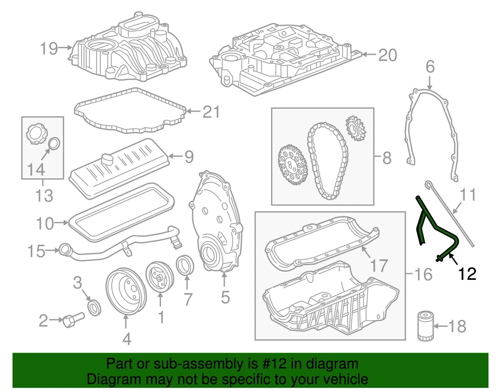 aaronchevrolet Genuine GM Engine Oil Level Indicator Tube 12567456 Part can be found as # 12 in the diagram above Product Description 2003-14 4.3L. upper. This GM Genuine Part is designed, engineered, and tested to rigorous standards and is backed by General Motors Original equipment parts are designed to work with your GM vehicle safety systems -- aftermarket replacement parts may not meet the same OE safety regulations, depending on the part type Specifications Brand GM Manufacturer Part Number 12567456 SKU 12567456 Product Genuine GM Engine Oil Level Indicator Tube 12567456 ONLY PART REFERENCE #12 ON THE DIAGRAM IS INCLUDED WARNING : May cause cancer and reproductive harm. See www.P65Warnings.ca.gov for more info. Terms and Conditions Thank you for shopping with us. Please find our policies below. If you have any other questions, please don't hesitate to contact us. Shipping Terms If you are located in Alaska, Hawaii or Puerto Rico Please contact us via eBay email to discuss shipping cost In stock orders ship within 24 hours. Weekend orders will be processed the next business day. If a part is not in stock and must be ordered from the manufacturer, it usually takes 2-3 days to arrive to us and will be promptly shipped to you. Most of the orders are shipped complete within 2-3 business days. A few of the parts ordered from the manufacturer may take up to 5-6 business days to arrive and will shipped to you immediately. Depending upon location, ground shipments usually take 2-7 days. Your order may be shipped Overnight for an additional cost. Oversized shipments will be additional; you will be contacted prior to shipping for approval. We cannot guarantee transit times for ground and oversize orders. Shipping Carrier substitutions may be made at our determination in an attempt to reduce shipping cost to the customer. We do not ship internationally. In the unlikely event that a part has been placed on backorder or discontinued, we will do our best to try and find one for you as quickly as possible. We do not ship COD orders. Return Policy Contact us to arrange for any returns. A copy of the invoice will need to be included with the return. Parts must be resaleable and in the original packaging. We cannot take back used parts. We cannot take back installed or tried parts. Electrical parts are not returnable. We do reserve the right to refuse and return any parts we find have been installed, are used or do not meet the above criteria. Return request need to be within 30 days of receipt. Cancellation Policy An order or a portion of an order may be cancelled up until the time it is shipped and no longer in our possession. Home • Newsletter Signup • Contact Us Copyright © 2025 aaronchevrolet , All rights reserved. Solution by RevolutionParts, Inc. :: Design by OCDesignsOnline