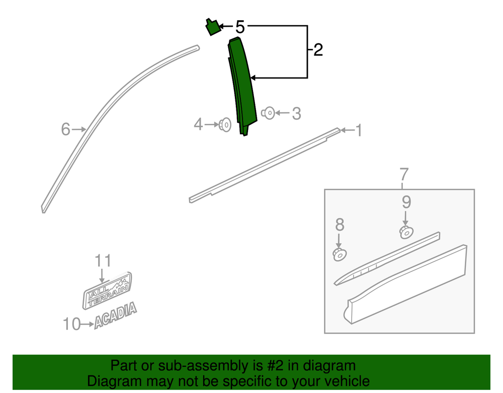World Parts Direct Genuine GM Front Driver Side Door Window Frame Rear Applique 84513569 Part can be found as # 2 in the diagram above Product Description Helps protect and enhance the appearance of your vehicle's door This GM Genuine Part is designed, engineered, and tested to rigorous standards and is backed by General Motors Specifications Brand GM Manufacturer Part Number 84513569 SKU 84513569 Product Genuine GM Front Driver Side Door Window Frame Rear Applique 84513569 Replaces 23100321 ONLY PART REFERENCE #2 ON THE DIAGRAM IS INCLUDED About Us WorldPartsDirect is a small, Texas based business located in the Dallas metroplex. There are about twenty of us that work tirelessly to get you the genuine, OEM parts you need at unbeatable prices. We pride ourselves in top quality customer service and our commitment to be the business we would want to shop with. We have one of the largest inventory networks in the country along with some of the most aggressive discounts. We love cars, and we love what we do! We hope you will love shopping with us , and we always welcome feedback on how we can make your shopping experience even better. Terms and Conditions Compatibility Guarantee (optional free service): Applies when you include your VIN during or before checkout. Simply click "Message to Seller" during checkout and include your VIN with any relevant details (ex: driver/ passenger side). Our fitment experts will confirm compatibility before shipping. If we determine that you purchased an incompatible part, we will correct your order if possible. If we cannot correct your order, we will notify you of the issue (ex: discontinued item) and give you the option to cancel. Part Authenticity and Warranty Guarantee: When you order from us, we guarantee that you will receive a genuine, OEM part. We do not stock anything aftermarket! Our parts are warrantied nationwide for 1 year at every Mopar (Chrysler/Dodge/Jeep/Ram) or General Motors (Chevrolet/Buick/GM/GMC) dealer in the country, depending on the brand of part you ordered. We are able to provide documentation that proves the validity of your purchase from our licensed dealership at anytime upon request. This documentation can be used to redeem this warranty if needed at the dealership of your choice and at no cost to you. Return Policy All of our products can be returned within 30 days. Please open a request for any of these reasons: Doesn't Fit Changed My Mind Found a Better Price Just Didn't Like it Ordered by Mistake The reason you pick has no impact on your refund amount, but it has a big impact on us as a seller. Choosing other reasons may delay the refund per an internal investigation and potential eBay appeal. If a part fails at anytime during the 1 year warranty period, any licensed new car dealership in the country that carries your brand of vehicle will replace the part for free. Simply request our dealer invoice for the part and provide it to your preferred dealer along with the defective part. Home • Newsletter Signup • Contact Us Copyright © 2025 World Parts Direct , All rights reserved. Solution by RevolutionParts, Inc. :: Design by OCDesignsOnline