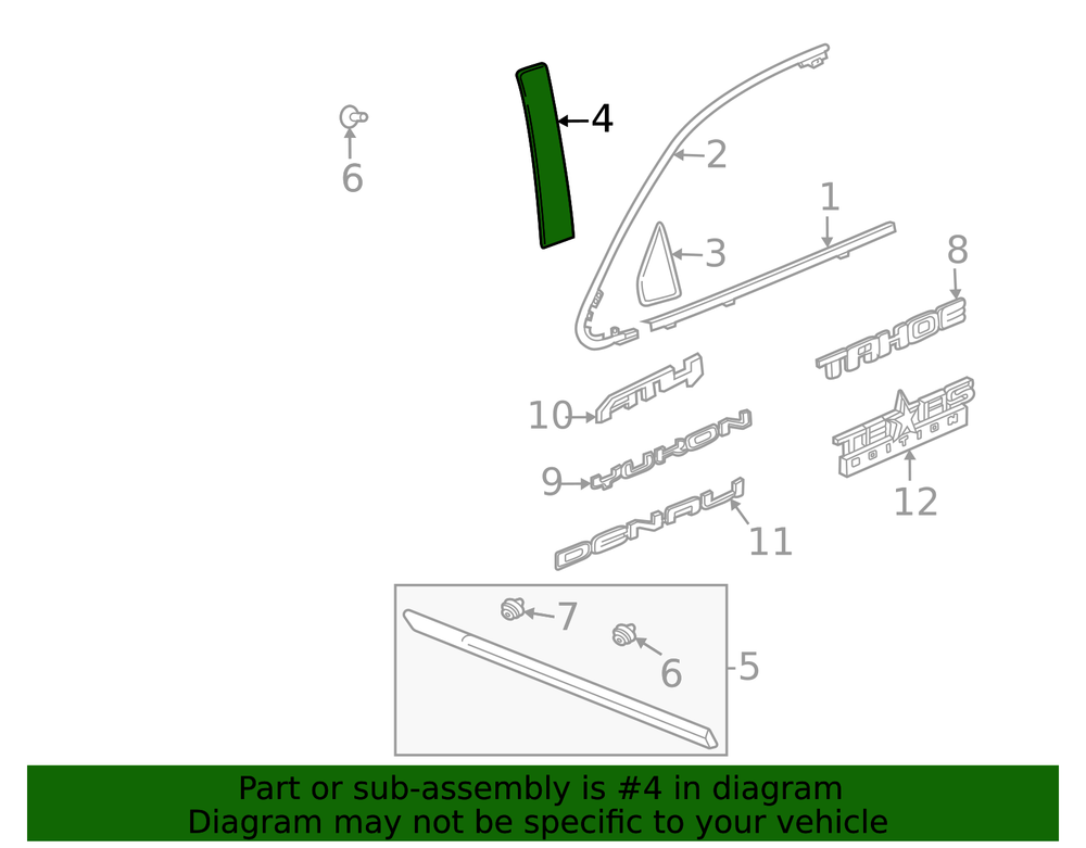 vanceautogroupofwoodward Genuine GM Front Driver Side Door Window Frame Rear Applique 84988281 Part can be found as # 4 in the diagram above Product Description Helps protect and enhance the appearance of your vehicle's door This GM Genuine Part is designed, engineered, and tested to rigorous standards and is backed by General Motors Specifications Brand GM Manufacturer Part Number 84988281 SKU 84988281 Product Genuine GM Front Driver Side Door Window Frame Rear Applique 84988281 Replaces 84148582, 84802743, 84877795, 85665197 ONLY PART REFERENCE #4 ON THE DIAGRAM IS INCLUDED WARNING : May cause cancer and reproductive harm. See www.P65Warnings.ca.gov for more info. Terms and Conditions Thank you for shopping with us. Please find our policies below. If you have any other questions, please don't hesitate to contact us. Shipping Terms If located in Alaska, Hawaii, and Puerto Rico Please contact US via eBay email for pricing In stock orders ship within 24 hours. Weekend orders will be processed the next business day. If a part is not in stock and must be ordered from the manufacturer, it usually takes 2-3 days to arrive to us and will be promptly shipped to you. Most of the orders are shipped complete within 2-3 business days. A few of the parts ordered from the manufacturer may take up to 5-6 business days to arrive and will shipped to you immediately. Depending upon location, ground shipments usually take 2-7 days. Your order may be shipped Overnight for an additional cost. Oversized shipments will be additional; you will be contacted prior to shipping for approval. We cannot guarantee transit times for ground and oversize orders. Shipping Carrier substitutions may be made at our determination in an attempt to reduce shipping cost to the customer. We do not ship internationally. In the unlikely event that a part has been placed on backorder or discontinued, we will do our best to try and find one for you as quickly as possible. We do not ship COD orders. Return Policy Contact us to arrange for any returns. A copy of the invoice will need to be included with the return. Parts must be resaleable and in the original packaging. We cannot take back used parts. We cannot take back installed or tried parts. Electrical parts are not returnable. We do reserve the right to refuse and return any parts we find have been installed, are used or do not meet the above criteria. Return request need to be within 30 days of receipt. Cancellation Policy An order or a portion of an order may be cancelled up until the time it is shipped and no longer in our possession. Home • Newsletter Signup • Contact Us Copyright © 2025 vanceautogroupofwoodward , All rights reserved. Solution by RevolutionParts, Inc. :: Design by OCDesignsOnline