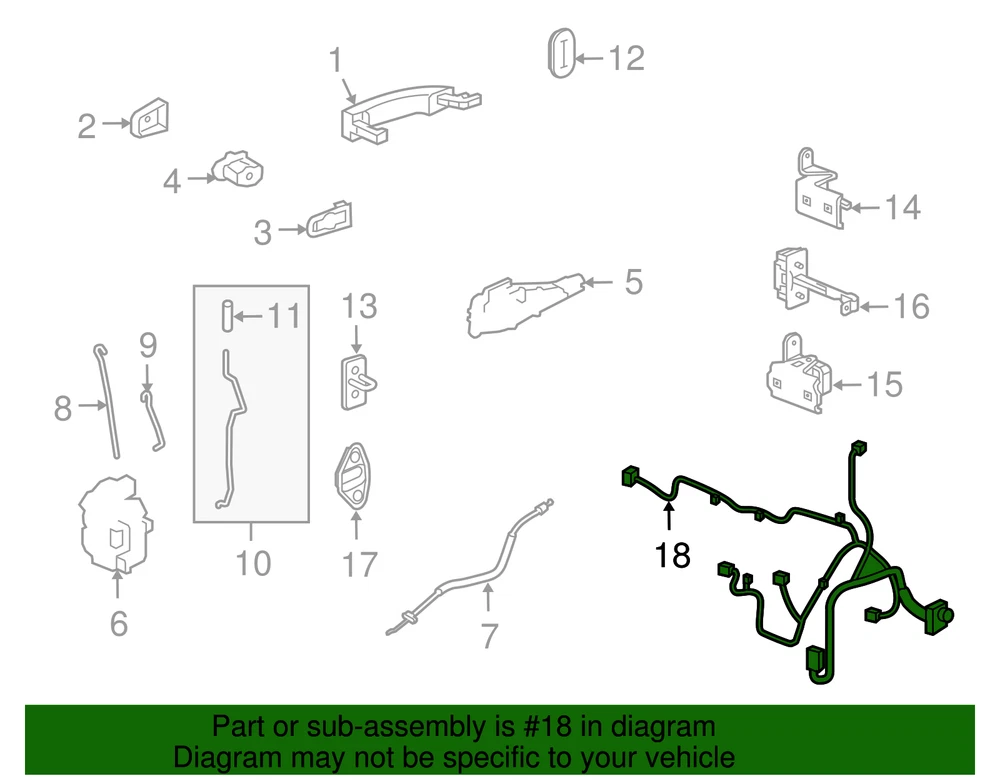 VRAY-GMC Genuine GM Harness Assembly-Front S/D Dr Wrg 20967807 Part can be found as # 18 in the diagram above Specifications Brand GM Manufacturer Part Number 20967807 SKU 20967807 Product Genuine GM Harness Assembly-Front S/D Dr Wrg 20967807 ONLY PART REFERENCE #18 ON THE DIAGRAM IS INCLUDED WARNING : May cause cancer and reproductive harm. See www.P65Warnings.ca.gov for more info. Terms and Conditions Thank you for shopping with us. Please find our policies below. If you have any other questions, please don't hesitate to contact us. Shipping Terms In stock orders ship within 24 hours. Weekend orders will be processed the next business day. If a part is not in stock and must be ordered from the manufacturer, it usually takes 2-3 days to arrive to us and will be promptly shipped to you. Most of the orders are shipped complete within 2-3 business days. A few of the parts ordered from the manufacturer may take up to 5-6 business days to arrive and will shipped to you immediately. Depending upon location, ground shipments usually take 2-7 days. Your order may be shipped Overnight for an additional cost. Oversized shipments will be additional; you will be contacted prior to shipping for approval. We cannot guarantee transit times for ground and oversize orders. Shipping Carrier substitutions may be made at our determination in an attempt to reduce shipping cost to the customer. We do not ship internationally. In the unlikely event that a part has been placed on backorder or discontinued, we will do our best to try and find one for you as quickly as possible. We do not ship COD orders. Return Policy Contact us to arrange for any returns. A copy of the invoice will need to be included with the return. Parts must be resaleable and in the original packaging. We cannot take back used parts. We cannot take back installed or tried parts. Electrical parts are not returnable. We do reserve the right to refuse and return any parts we find have been installed, are used or do not meet the above criteria. Return request need to be within 30 days of receipt. Cancellation Policy An order or a portion of an order may be cancelled up until the time it is shipped and no longer in our possession. Home • Newsletter Signup • Contact Us Copyright © 2025 VRAY-GMC , All rights reserved. Solution by RevolutionParts, Inc. :: Design by OCDesignsOnline