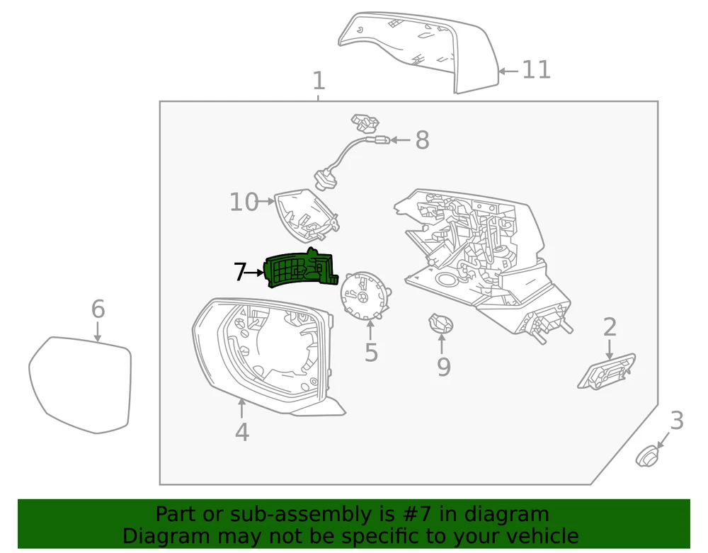 aaronchevrolet Genuine GM Passenger Side Rearview Mirror Turn Signal Lamp 84642804 Part can be found as # 7 in the diagram above Product Description Helps show the direction in which your vehicle will be turning This GM Genuine Part is designed, engineered, and tested to rigorous standards and is backed by General Motors Specifications Brand GM Manufacturer Part Number 84642804 SKU 84642804 Product Genuine GM Passenger Side Rearview Mirror Turn Signal Lamp 84642804 ONLY PART REFERENCE #7 ON THE DIAGRAM IS INCLUDED WARNING : May cause cancer and reproductive harm. See www.P65Warnings.ca.gov for more info. Terms and Conditions Thank you for shopping with us. Please find our policies below. If you have any other questions, please don't hesitate to contact us. Shipping Terms If you are located in Alaska, Hawaii or Puerto Rico Please contact us via eBay email to discuss shipping cost In stock orders ship within 24 hours. Weekend orders will be processed the next business day. If a part is not in stock and must be ordered from the manufacturer, it usually takes 2-3 days to arrive to us and will be promptly shipped to you. Most of the orders are shipped complete within 2-3 business days. A few of the parts ordered from the manufacturer may take up to 5-6 business days to arrive and will shipped to you immediately. Depending upon location, ground shipments usually take 2-7 days. Your order may be shipped Overnight for an additional cost. Oversized shipments will be additional; you will be contacted prior to shipping for approval. We cannot guarantee transit times for ground and oversize orders. Shipping Carrier substitutions may be made at our determination in an attempt to reduce shipping cost to the customer. We do not ship internationally. In the unlikely event that a part has been placed on backorder or discontinued, we will do our best to try and find one for you as quickly as possible. We do not ship COD orders. Return Policy Contact us to arrange for any returns. A copy of the invoice will need to be included with the return. Parts must be resaleable and in the original packaging. We cannot take back used parts. We cannot take back installed or tried parts. Electrical parts are not returnable. We do reserve the right to refuse and return any parts we find have been installed, are used or do not meet the above criteria. Return request need to be within 30 days of receipt. Cancellation Policy An order or a portion of an order may be cancelled up until the time it is shipped and no longer in our possession. Home • Newsletter Signup • Contact Us Copyright © 2025 aaronchevrolet , All rights reserved. Solution by RevolutionParts, Inc. :: Design by OCDesignsOnline