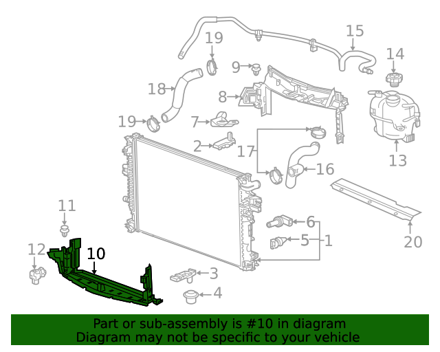 World Parts Direct Genuine GM Radiator Air Lower Deflector 84284108 Part can be found as # 10 in the diagram above Product Description GM Genuine Parts Radiator Air Lower Deflector (Part Number: 84284108 ) is a front lower deflector designed to help direct airflow and assist in regulating engine cooling. Type: Lower Radiator Air Deflector / Baffle Function: Helps regulate engine temperature by directing airflow through the radiator core Collision Note: Collision-quality part engineered to meet OE safety and repair standards Also Known As: Lower Baffle World Parts Direct is a U.S. based company offering competitive pricing, a vehicle-compatibility guarantee, knowledgeable support, and OEM-backed warranty coverage. Specifications Brand GM Manufacturer Part Number 84284108 SKU 84284108 Product Genuine GM Radiator Air Lower Deflector 84284108 ONLY PART REFERENCE #10 ON THE DIAGRAM IS INCLUDED About Us WorldPartsDirect is a small, Texas based business located in the Dallas metroplex. There are about twenty of us that work tirelessly to get you the genuine, OEM parts you need at unbeatable prices. We pride ourselves in top quality customer service and our commitment to be the business we would want to shop with. We have one of the largest inventory networks in the country along with some of the most aggressive discounts. We love cars, and we love what we do! We hope you will love shopping with us , and we always welcome feedback on how we can make your shopping experience even better. Terms and Conditions Compatibility Guarantee (optional free service): Applies when you include your VIN during or before checkout. Simply click "Message to Seller" during checkout and include your VIN with any relevant details (ex: driver/ passenger side). Our fitment experts will confirm compatibility before shipping. If we determine that you purchased an incompatible part, we will correct your order if possible. If we cannot correct your order, we will notify you of the issue (ex: discontinued item) and give you the option to cancel. Part Authenticity and Warranty Guarantee: When you order from us, we guarantee that you will receive a genuine, OEM part. We do not stock anything aftermarket! Our parts are warrantied nationwide for 1 year at every Mopar (Chrysler/Dodge/Jeep/Ram) or General Motors (Chevrolet/Buick/GM/GMC) dealer in the country, depending on the brand of part you ordered. We are able to provide documentation that proves the validity of your purchase from our licensed dealership at anytime upon request. This documentation can be used to redeem this warranty if needed at the dealership of your choice and at no cost to you. Return Policy All of our products can be returned within 30 days. Please open a request for any of these reasons: Doesn't Fit Changed My Mind Found a Better Price Just Didn't Like it Ordered by Mistake The reason you pick has no impact on your refund amount, but it has a big impact on us as a seller. Choosing other reasons may delay the refund per an internal investigation and potential eBay appeal. If a part fails at anytime during the 1 year warranty period, any licensed new car dealership in the country that carries your brand of vehicle will replace the part for free. Simply request our dealer invoice for the part and provide it to your preferred dealer along with the defective part. Home • Newsletter Signup • Contact Us Copyright © 2026 World Parts Direct , All rights reserved. Solution by RevolutionParts, Inc. :: Design by OCDesignsOnline