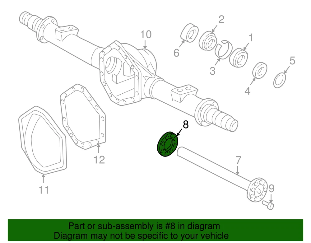 aaronchevrolet Genuine GM Rear Axle Shaft/Hub Gasket 12471641 Part can be found as # 8 in the diagram above Product Description All models. Disc brakes, 3/4 & 1 ton. 10.50" ring gear. 11.50" ring gear. 1995-00 3/4 & 1 ton with 10.5" ring gear. Disc brakes without sierra c3 or denali. 1/2, 3/4 & 1 ton, 1996 new style,. This GM Genuine Part is designed, engineered, and tested to rigorous standards and is backed by General Motors Specifications Brand GM Manufacturer Part Number 12471641 SKU 12471641 Product Genuine GM Rear Axle Shaft/Hub Gasket 12471641 Replaces 00327739, 12471328 ONLY PART REFERENCE #8 ON THE DIAGRAM IS INCLUDED WARNING : May cause cancer and reproductive harm. See www.P65Warnings.ca.gov for more info. Terms and Conditions Thank you for shopping with us. Please find our policies below. If you have any other questions, please don't hesitate to contact us. Shipping Terms If you are located in Alaska, Hawaii or Puerto Rico Please contact us via eBay email to discuss shipping cost In stock orders ship within 24 hours. Weekend orders will be processed the next business day. If a part is not in stock and must be ordered from the manufacturer, it usually takes 2-3 days to arrive to us and will be promptly shipped to you. Most of the orders are shipped complete within 2-3 business days. A few of the parts ordered from the manufacturer may take up to 5-6 business days to arrive and will shipped to you immediately. Depending upon location, ground shipments usually take 2-7 days. Your order may be shipped Overnight for an additional cost. Oversized shipments will be additional; you will be contacted prior to shipping for approval. We cannot guarantee transit times for ground and oversize orders. Shipping Carrier substitutions may be made at our determination in an attempt to reduce shipping cost to the customer. We do not ship internationally. In the unlikely event that a part has been placed on backorder or discontinued, we will do our best to try and find one for you as quickly as possible. We do not ship COD orders. Return Policy Contact us to arrange for any returns. A copy of the invoice will need to be included with the return. Parts must be resaleable and in the original packaging. We cannot take back used parts. We cannot take back installed or tried parts. Electrical parts are not returnable. We do reserve the right to refuse and return any parts we find have been installed, are used or do not meet the above criteria. Return request need to be within 30 days of receipt. Cancellation Policy An order or a portion of an order may be cancelled up until the time it is shipped and no longer in our possession. Home • Newsletter Signup • Contact Us Copyright © 2024 aaronchevrolet , All rights reserved. Solution by RevolutionParts, Inc. :: Design by OCDesignsOnline