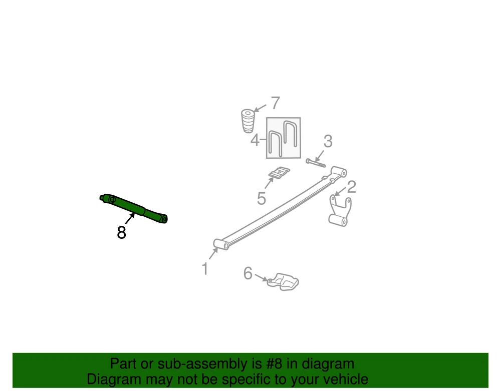 VRAY-GMC Genuine GM Shock Absorber 22064697 Part can be found as # 8 in the diagram above Product Description Express, savana. 1/2 ton. Specifications Brand GM Manufacturer Part Number 22064697 SKU 22064697 Product Genuine GM Shock Absorber 22064697 ONLY PART REFERENCE #8 ON THE DIAGRAM IS INCLUDED WARNING : May cause cancer and reproductive harm. See www.P65Warnings.ca.gov for more info. Terms and Conditions Thank you for shopping with us. Please find our policies below. If you have any other questions, please don't hesitate to contact us. Shipping Terms In stock orders ship within 24 hours. Weekend orders will be processed the next business day. If a part is not in stock and must be ordered from the manufacturer, it usually takes 2-3 days to arrive to us and will be promptly shipped to you. Most of the orders are shipped complete within 2-3 business days. A few of the parts ordered from the manufacturer may take up to 5-6 business days to arrive and will shipped to you immediately. Depending upon location, ground shipments usually take 2-7 days. Your order may be shipped Overnight for an additional cost. Oversized shipments will be additional; you will be contacted prior to shipping for approval. We cannot guarantee transit times for ground and oversize orders. Shipping Carrier substitutions may be made at our determination in an attempt to reduce shipping cost to the customer. We do not ship internationally. In the unlikely event that a part has been placed on backorder or discontinued, we will do our best to try and find one for you as quickly as possible. We do not ship COD orders. Return Policy Contact us to arrange for any returns. A copy of the invoice will need to be included with the return. Parts must be resaleable and in the original packaging. We cannot take back used parts. We cannot take back installed or tried parts. Electrical parts are not returnable. We do reserve the right to refuse and return any parts we find have been installed, are used or do not meet the above criteria. Return request need to be within 30 days of receipt. Cancellation Policy An order or a portion of an order may be cancelled up until the time it is shipped and no longer in our possession. Home • Newsletter Signup • Contact Us Copyright © 2025 VRAY-GMC , All rights reserved. Solution by RevolutionParts, Inc. :: Design by OCDesignsOnline
