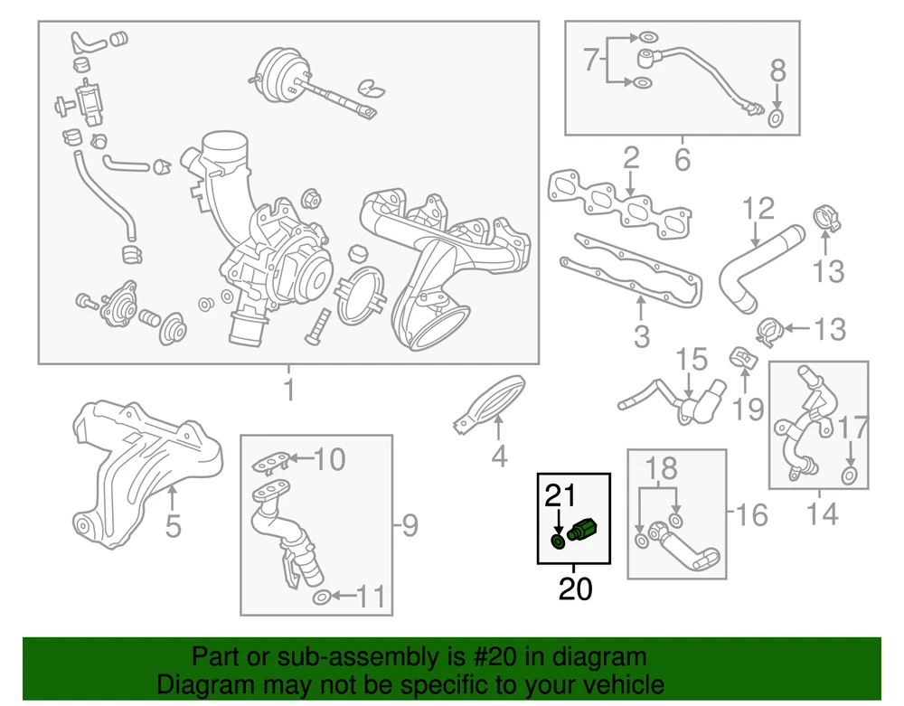 aaronchevrolet Genuine GM Turbocharger Coolant Hose Connector 25199813 Part can be found as # 20 in the diagram above Product Description 1.4L turbo. Without high output. This GM Genuine Part is designed, engineered, and tested to rigorous standards and is backed by General Motors Specifications Brand GM Manufacturer Part Number 25199813 SKU 25199813 Product Genuine GM Turbocharger Coolant Hose Connector 25199813 Replaces 25195896, 25198927, 55572127 ONLY PART REFERENCE #20 ON THE DIAGRAM IS INCLUDED WARNING : May cause cancer and reproductive harm. See www.P65Warnings.ca.gov for more info. Terms and Conditions Thank you for shopping with us. Please find our policies below. If you have any other questions, please don't hesitate to contact us. Shipping Terms If you are located in Alaska, Hawaii or Puerto Rico Please contact us via eBay email to discuss shipping cost In stock orders ship within 24 hours. Weekend orders will be processed the next business day. If a part is not in stock and must be ordered from the manufacturer, it usually takes 2-3 days to arrive to us and will be promptly shipped to you. Most of the orders are shipped complete within 2-3 business days. A few of the parts ordered from the manufacturer may take up to 5-6 business days to arrive and will shipped to you immediately. Depending upon location, ground shipments usually take 2-7 days. Your order may be shipped Overnight for an additional cost. Oversized shipments will be additional; you will be contacted prior to shipping for approval. We cannot guarantee transit times for ground and oversize orders. Shipping Carrier substitutions may be made at our determination in an attempt to reduce shipping cost to the customer. We do not ship internationally. In the unlikely event that a part has been placed on backorder or discontinued, we will do our best to try and find one for you as quickly as possible. We do not ship COD orders. Return Policy Contact us to arrange for any returns. A copy of the invoice will need to be included with the return. Parts must be resaleable and in the original packaging. We cannot take back used parts. We cannot take back installed or tried parts. Electrical parts are not returnable. We do reserve the right to refuse and return any parts we find have been installed, are used or do not meet the above criteria. Return request need to be within 30 days of receipt. Cancellation Policy An order or a portion of an order may be cancelled up until the time it is shipped and no longer in our possession. Home • Newsletter Signup • Contact Us Copyright © 2025 aaronchevrolet , All rights reserved. Solution by RevolutionParts, Inc. :: Design by OCDesignsOnline