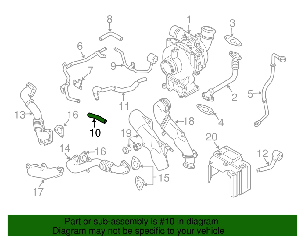 aaronchevrolet Genuine GM Turbocharger Coolant Return Hose 12652724 Part can be found as # 10 in the diagram above Product Description Turbocharger Cooling. Outlet. Pipe to Engine. Lwr return hose. 2015-16 6.6L diesel oil & coolant pipes. front. This GM Genuine Part is designed, engineered, and tested to rigorous standards and is backed by General Motors Specifications Brand GM Manufacturer Part Number 12652724 SKU 12652724 Product Genuine GM Turbocharger Coolant Return Hose 12652724 Replaces 12639200 ONLY PART REFERENCE #10 ON THE DIAGRAM IS INCLUDED WARNING : May cause cancer and reproductive harm. See www.P65Warnings.ca.gov for more info. Terms and Conditions Thank you for shopping with us. Please find our policies below. If you have any other questions, please don't hesitate to contact us. Shipping Terms If you are located in Alaska, Hawaii or Puerto Rico Please contact us via eBay email to discuss shipping cost In stock orders ship within 24 hours. Weekend orders will be processed the next business day. If a part is not in stock and must be ordered from the manufacturer, it usually takes 2-3 days to arrive to us and will be promptly shipped to you. Most of the orders are shipped complete within 2-3 business days. A few of the parts ordered from the manufacturer may take up to 5-6 business days to arrive and will shipped to you immediately. Depending upon location, ground shipments usually take 2-7 days. Your order may be shipped Overnight for an additional cost. Oversized shipments will be additional; you will be contacted prior to shipping for approval. We cannot guarantee transit times for ground and oversize orders. Shipping Carrier substitutions may be made at our determination in an attempt to reduce shipping cost to the customer. We do not ship internationally. In the unlikely event that a part has been placed on backorder or discontinued, we will do our best to try and find one for you as quickly as possible. We do not ship COD orders. Return Policy Contact us to arrange for any returns. A copy of the invoice will need to be included with the return. Parts must be resaleable and in the original packaging. We cannot take back used parts. We cannot take back installed or tried parts. Electrical parts are not returnable. We do reserve the right to refuse and return any parts we find have been installed, are used or do not meet the above criteria. Return request need to be within 30 days of receipt. Cancellation Policy An order or a portion of an order may be cancelled up until the time it is shipped and no longer in our possession. Home • Newsletter Signup • Contact Us Copyright © 2025 aaronchevrolet , All rights reserved. Solution by RevolutionParts, Inc. :: Design by OCDesignsOnline