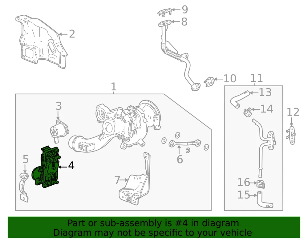 aaronchevrolet Genuine GM Turbocharger Wastegate Actuator 12678523 Part can be found as # 4 in the diagram above Product Description 1.3L turbo. This GM Genuine Part is designed, engineered, and tested to rigorous standards and is backed by General Motors Specifications Brand GM Manufacturer Part Number 12678523 SKU 12678523 Product Genuine GM Turbocharger Wastegate Actuator 12678523 ONLY PART REFERENCE #4 ON THE DIAGRAM IS INCLUDED WARNING : May cause cancer and reproductive harm. See www.P65Warnings.ca.gov for more info. Terms and Conditions Thank you for shopping with us. Please find our policies below. If you have any other questions, please don't hesitate to contact us. Shipping Terms If you are located in Alaska, Hawaii or Puerto Rico Please contact us via eBay email to discuss shipping cost In stock orders ship within 24 hours. Weekend orders will be processed the next business day. If a part is not in stock and must be ordered from the manufacturer, it usually takes 2-3 days to arrive to us and will be promptly shipped to you. Most of the orders are shipped complete within 2-3 business days. A few of the parts ordered from the manufacturer may take up to 5-6 business days to arrive and will shipped to you immediately. Depending upon location, ground shipments usually take 2-7 days. Your order may be shipped Overnight for an additional cost. Oversized shipments will be additional; you will be contacted prior to shipping for approval. We cannot guarantee transit times for ground and oversize orders. Shipping Carrier substitutions may be made at our determination in an attempt to reduce shipping cost to the customer. We do not ship internationally. In the unlikely event that a part has been placed on backorder or discontinued, we will do our best to try and find one for you as quickly as possible. We do not ship COD orders. Return Policy Contact us to arrange for any returns. A copy of the invoice will need to be included with the return. Parts must be resaleable and in the original packaging. We cannot take back used parts. We cannot take back installed or tried parts. Electrical parts are not returnable. We do reserve the right to refuse and return any parts we find have been installed, are used or do not meet the above criteria. Return request need to be within 30 days of receipt. Cancellation Policy An order or a portion of an order may be cancelled up until the time it is shipped and no longer in our possession. Home • Newsletter Signup • Contact Us Copyright © 2025 aaronchevrolet , All rights reserved. Solution by RevolutionParts, Inc. :: Design by OCDesignsOnline