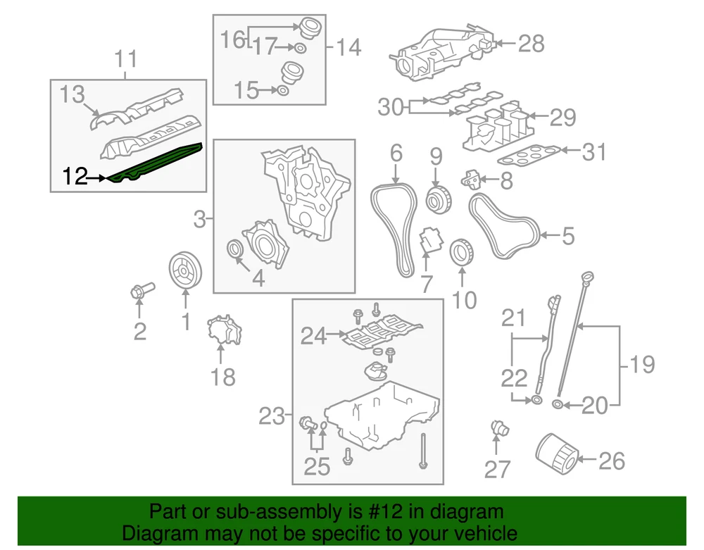 VRAY-GMC Genuine GM Valve Cover Gasket 12641261 Part can be found as # 12 in the diagram above Specifications Brand GM Manufacturer Part Number 12641261 SKU 12641261 Product Genuine GM Valve Cover Gasket 12641261 Replaces 12595107 ONLY PART REFERENCE #12 ON THE DIAGRAM IS INCLUDED WARNING : May cause cancer and reproductive harm. See www.P65Warnings.ca.gov for more info. Terms and Conditions Thank you for shopping with us. Please find our policies below. If you have any other questions, please don't hesitate to contact us. Shipping Terms In stock orders ship within 24 hours. Weekend orders will be processed the next business day. If a part is not in stock and must be ordered from the manufacturer, it usually takes 2-3 days to arrive to us and will be promptly shipped to you. Most of the orders are shipped complete within 2-3 business days. A few of the parts ordered from the manufacturer may take up to 5-6 business days to arrive and will shipped to you immediately. Depending upon location, ground shipments usually take 2-7 days. Your order may be shipped Overnight for an additional cost. Oversized shipments will be additional; you will be contacted prior to shipping for approval. We cannot guarantee transit times for ground and oversize orders. Shipping Carrier substitutions may be made at our determination in an attempt to reduce shipping cost to the customer. We do not ship internationally. In the unlikely event that a part has been placed on backorder or discontinued, we will do our best to try and find one for you as quickly as possible. We do not ship COD orders. Return Policy Contact us to arrange for any returns. A copy of the invoice will need to be included with the return. Parts must be resaleable and in the original packaging. We cannot take back used parts. We cannot take back installed or tried parts. Electrical parts are not returnable. We do reserve the right to refuse and return any parts we find have been installed, are used or do not meet the above criteria. Return request need to be within 30 days of receipt. Cancellation Policy An order or a portion of an order may be cancelled up until the time it is shipped and no longer in our possession. Home • Newsletter Signup • Contact Us Copyright © 2025 VRAY-GMC , All rights reserved. Solution by RevolutionParts, Inc. :: Design by OCDesignsOnline