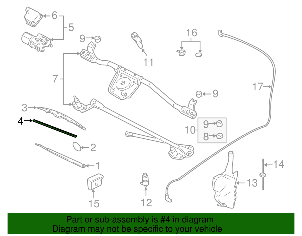 VRAY-GMC Genuine GM Wiper, W/S 22155307 Part can be found as # 4 in the diagram above Specifications Brand GM Manufacturer Part Number 22155307 SKU 22155307 Product Genuine GM Wiper, W/S 22155307 ONLY PART REFERENCE #4 ON THE DIAGRAM IS INCLUDED WARNING : May cause cancer and reproductive harm. See www.P65Warnings.ca.gov for more info. Terms and Conditions Thank you for shopping with us. Please find our policies below. If you have any other questions, please don't hesitate to contact us. Shipping Terms In stock orders ship within 24 hours. Weekend orders will be processed the next business day. If a part is not in stock and must be ordered from the manufacturer, it usually takes 2-3 days to arrive to us and will be promptly shipped to you. Most of the orders are shipped complete within 2-3 business days. A few of the parts ordered from the manufacturer may take up to 5-6 business days to arrive and will shipped to you immediately. Depending upon location, ground shipments usually take 2-7 days. Your order may be shipped Overnight for an additional cost. Oversized shipments will be additional; you will be contacted prior to shipping for approval. We cannot guarantee transit times for ground and oversize orders. Shipping Carrier substitutions may be made at our determination in an attempt to reduce shipping cost to the customer. We do not ship internationally. In the unlikely event that a part has been placed on backorder or discontinued, we will do our best to try and find one for you as quickly as possible. We do not ship COD orders. Return Policy Contact us to arrange for any returns. A copy of the invoice will need to be included with the return. Parts must be resaleable and in the original packaging. We cannot take back used parts. We cannot take back installed or tried parts. Electrical parts are not returnable. We do reserve the right to refuse and return any parts we find have been installed, are used or do not meet the above criteria. Return request need to be within 30 days of receipt. Cancellation Policy An order or a portion of an order may be cancelled up until the time it is shipped and no longer in our possession. Home • Newsletter Signup • Contact Us Copyright © 2025 VRAY-GMC , All rights reserved. Solution by RevolutionParts, Inc. :: Design by OCDesignsOnline