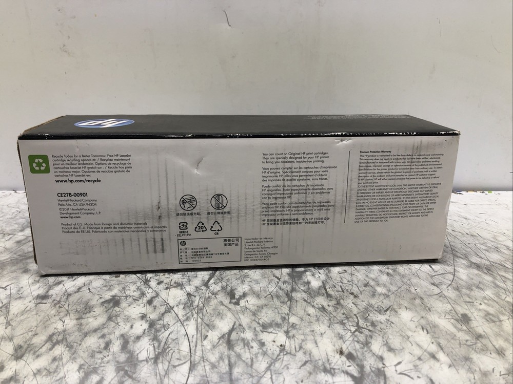 New and unused in original packaging May contain scuffs and scratches from previous use storage and handling Only includes the Genuine HP 78A CE278A Black Toner Cartridge HP LaserJet NEW SEALED Does not include any additional hardware or accessories not displayed Please see photos OFFERS WELCOME FREE SHIPPING TO THE CONTINENTAL UNITED STATES ONLY All shipping prices are quoted for The Continental United States. If you live outside of the Continental U.S. and your item cannot be shipped through a global shipping center we will contact you 30 Day DOA Warranty If item arrives as described buyer is responsible for return shipping cost, a restocking fee may apply AP