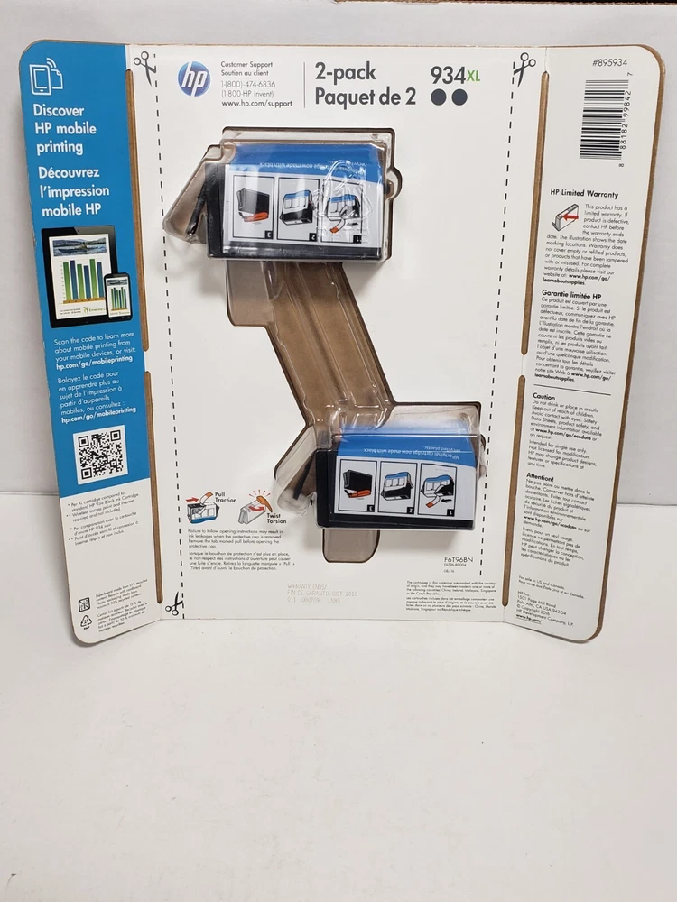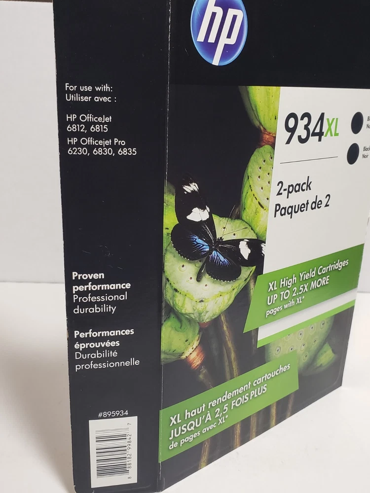 Genuine HP 934XL High Yield Black Ink Cartridges 2 Pack.