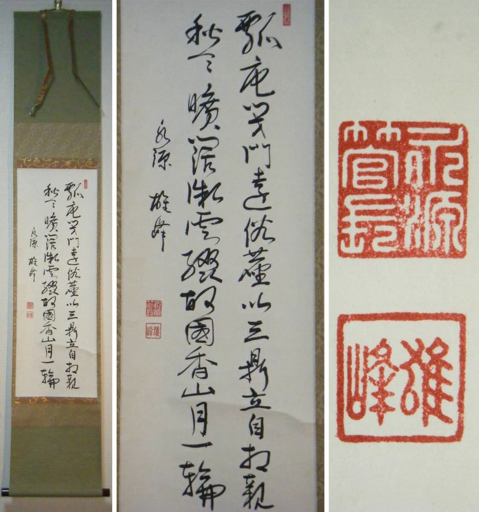 Item Title Genuine Hanging Scroll, Yumine'S Signature, Two-Line Book, Masterpiece, O145 Payment Supports managed payments Please pay within 5 days after auction is finished. About Us We are located in Japan. It's our pleasure to make you happy by proposing our recommend item. If you have any questions or request about items, please feel free to ask us. International Buyers - Please Note: -Import duties, taxes, and charges are not included in the item price or shipping charges. These charges are the buyer's responsibility. -Please check with your country's customs office to determine what these additional costs will be prior to bidding/buying. -These charges are normally collected by the delivering freight (shipping) company or when you pick the item up - do not confuse them for additional shipping charges. -We do not mark merchandise values below value or mark items as - gifts - The US and International government regulations prohibit such behavior. Thank you for your understanding.