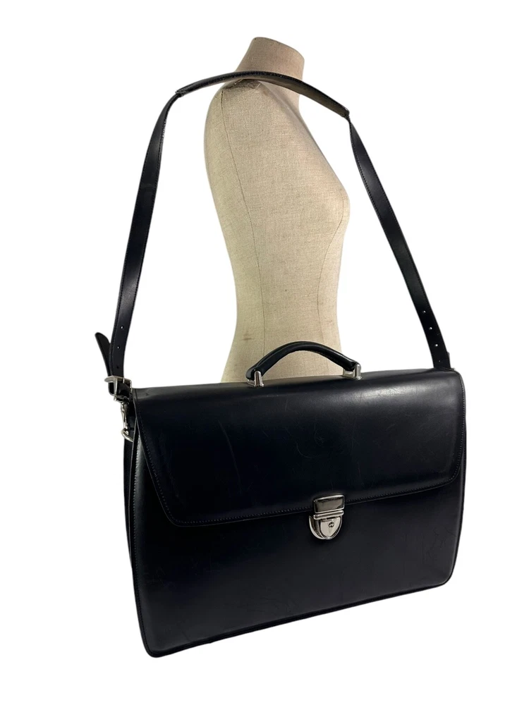 Measurements are 16"3 wide, 11"8 high, 4"7 deep with a 48 "shoulder strap with a 19" drop. On the interior there are two main compartments, lined fabric interior, mid zip pocket along with multi use pockets and a front flap closure. The leather is thick and strong with a top handle, large exterior pocket, silver tone hardware, detachable shoulder strap and is in good condition. This briefcase is great for work, school and travel and is spacious. There are several light scuffs with no tears and is 100% Jack Georges in good condition for its age. I SHIP WORLDWIDE I want to stress that item is vintage which means it's not new. All my customers are very important to me and I believe communication is very important. I do not sell or encourage any one to sell fakes. I do gladly combine shipping and items returned to me by the post office will be charged additional postage upon being reshipped. Any questions please email me and I will be more than happy to answer all your questions. No refunds. Contact Items are sold as is and if you have an questions please let me know before you purchase item. Shipping Shipping is done with USPS priority mail within the U.S. and shipping takes 4-5 business days from the date of payment. Please note I do combine shipping. If you have any questions please feel free to email me.
