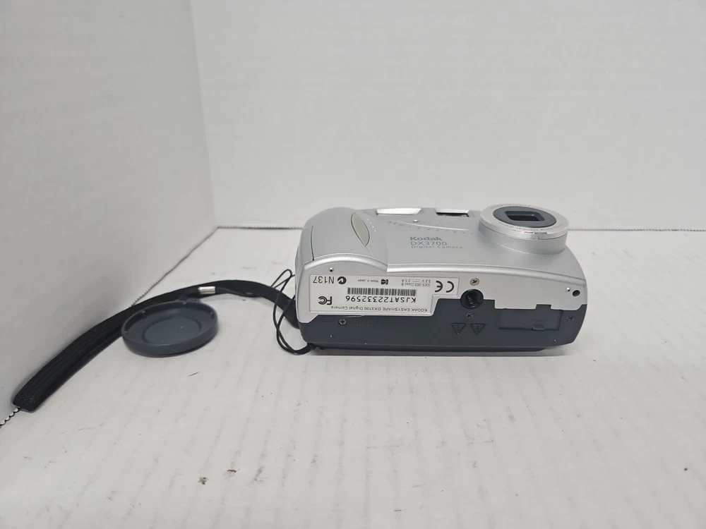 This genuine Kodak (DX3700) 37mm light gray digital camera is a compact device that has been tested and works perfectly. It features auto focus and optical zoom, allowing you to capture high-quality images with ease. The camera is made in Japan and uses AA batteries for power. In addition to its reliable performance, this camera also boasts a sleek design and a range of features. It is perfect for capturing and sharing photos and videos, and is ideal for both personal and professional use. Don't miss out on the opportunity to own this fantastic piece of photography equipment.