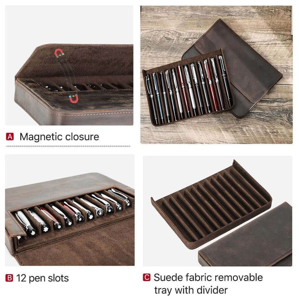 Features: - Fine workmanship and perfect style. - Premium Genuine leather makes an impression. - Very rustic, vintage and artistic looking. It’s a stylish pencil case great for both men and women. - A genuine leather pen case treats your writing tools with care. Pencil case save pens, fountain pens, pencils or roller ball pens from scratches and damage. Specification: Material: Genuine Leather Color: Coffee Size: 23.8x16.5x3cm (Approx.) Capacity:12 Pens Packing included: 1 x Genuine Leather Pencil Case (NOT included pen) Note: - Only the pen case sell, other products are not included. - Due to the light, display settings and other factors, may lead to slight color difference between the picture and the real thing, the final color should be based on the real goods Features: - Fine workmanship and perfect style. - Premium Genuine leather makes an impression. - Very rustic, vintage and artistic looking. It’s a stylish pencil case great for both men and women. - A genuine leather pen case treats your writing tools with care. Pencil case save pens, fountain pens, pencils or roller ball pens from scratches and damage. Specification: Material: Genuine Leather Color: Coffee Size: 23.8x16.5x3cm (Approx.) Capacity:12 Pens Packing included: 1 x Genuine Leather Pencil Case (NOT included pen) Note: - Only the pen case sell, other products are not included. - Due to the light, display settings and other factors, may lead to slight color difference between the picture and the real thing, the final color should be based on the real goods