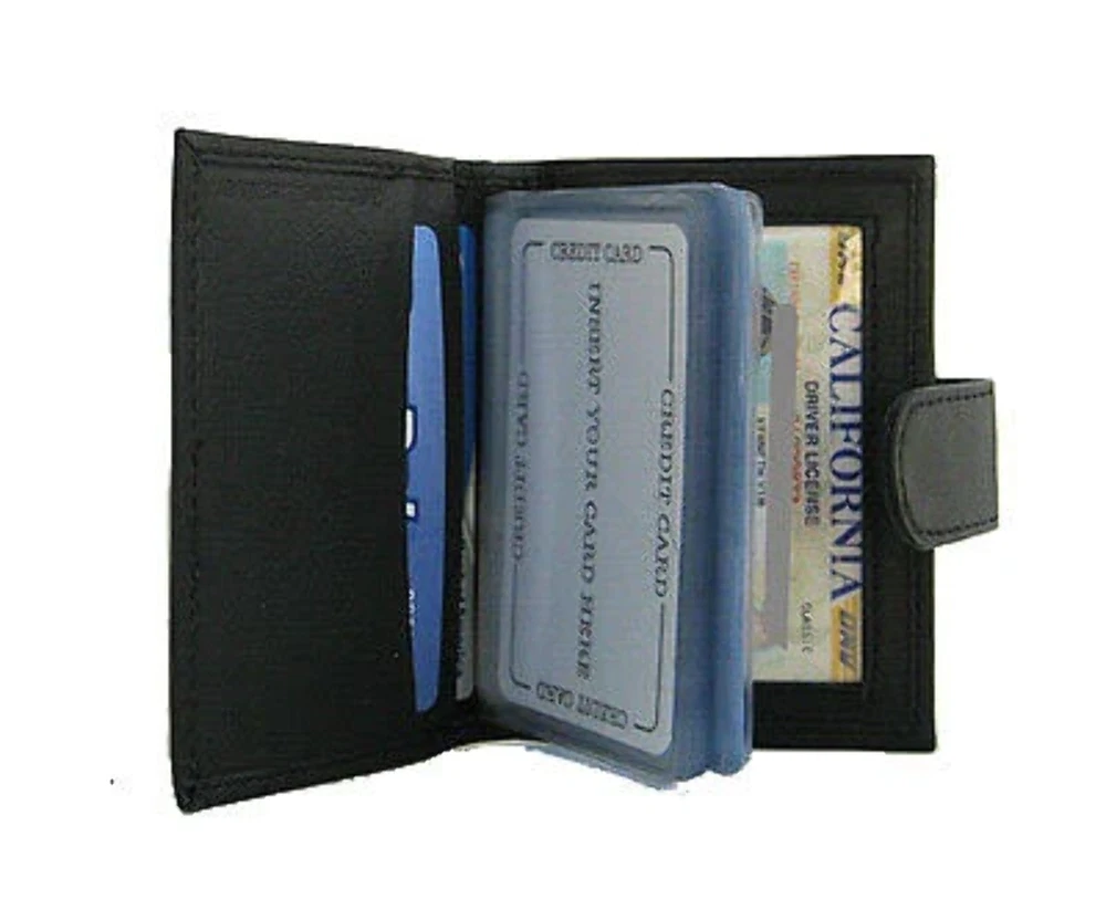 Features: Condition: New Material: 100% Genuine Leather Color: Black Length: 4.25 inches Width: 3 inches Inside Detail: 10-20+ Business Card inserts and Credit card holder, picture ID, Other Compartment for Inserts.