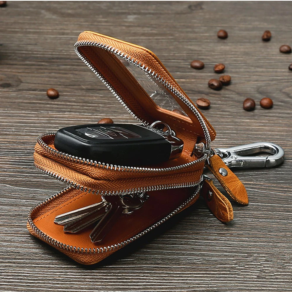 This key wallet is a game-changer! The genuine leather feels luxurious and durable, while the dual-layer design keeps everything organized—love the clear window for easy access to my car key. The zippers are smooth, and it fits perfectly in my pocket or bag. Highly recommend for anyone who wants to keep their keys safe and stylish!