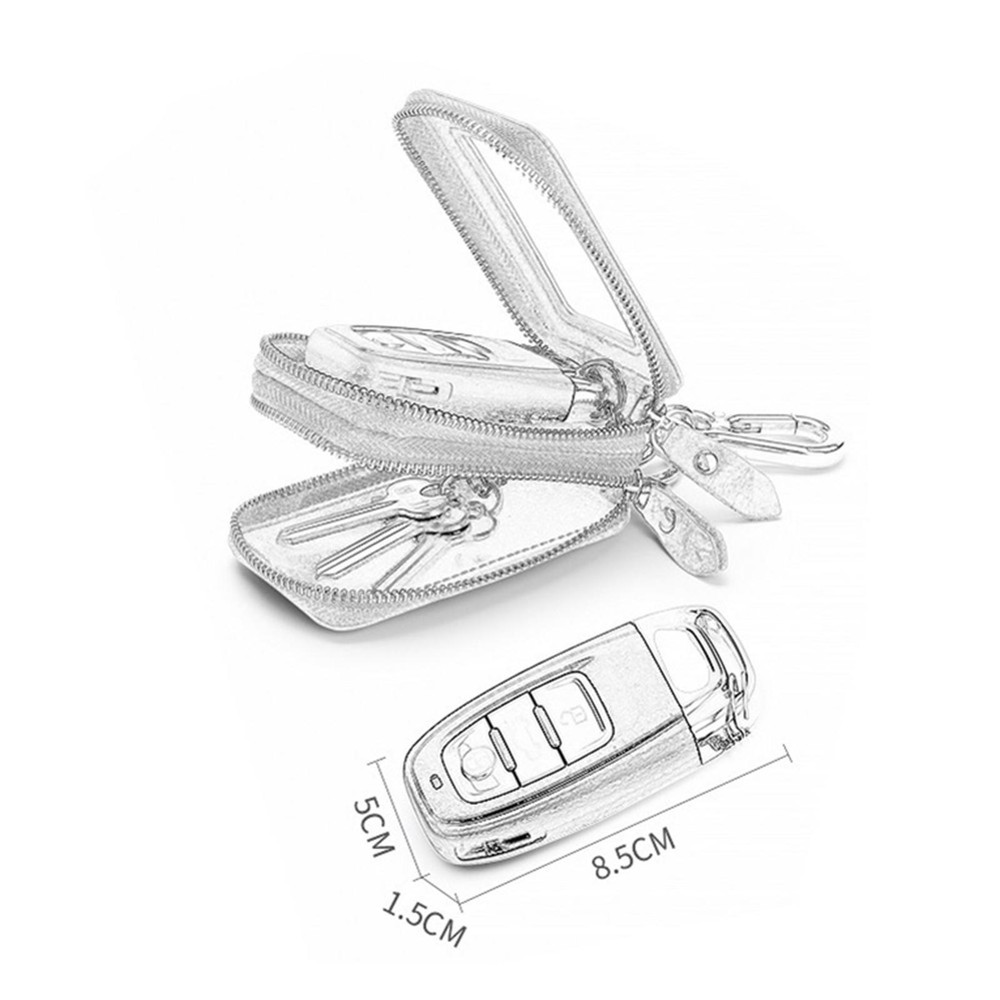 Genuine Leather Car Key Holder Wallet with Double Zipper Keychain Purse