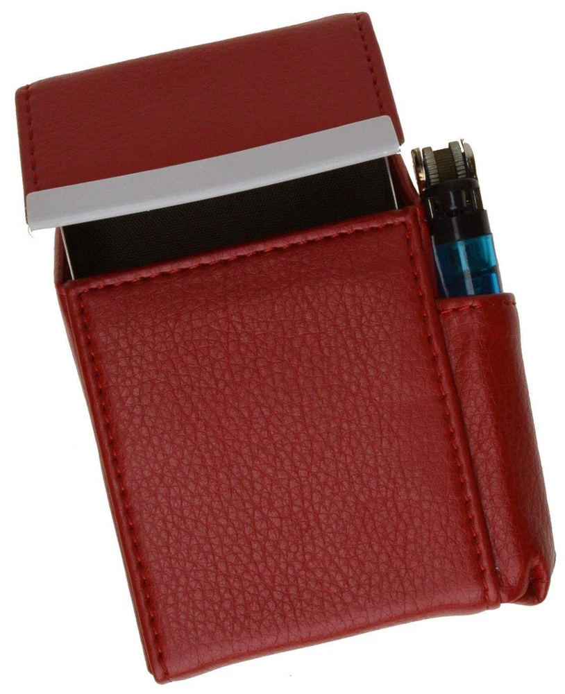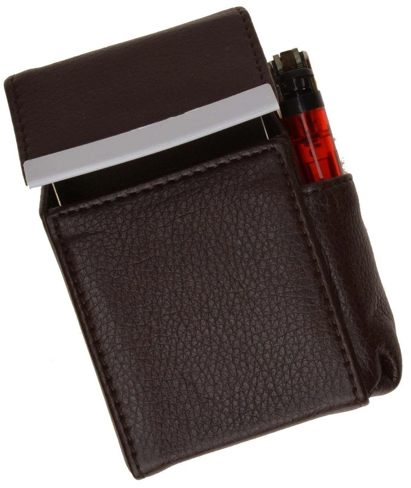 Genuine Leather Cigarette Pack Holder Flip-Top Pouch Smoke Carrying Hard Case