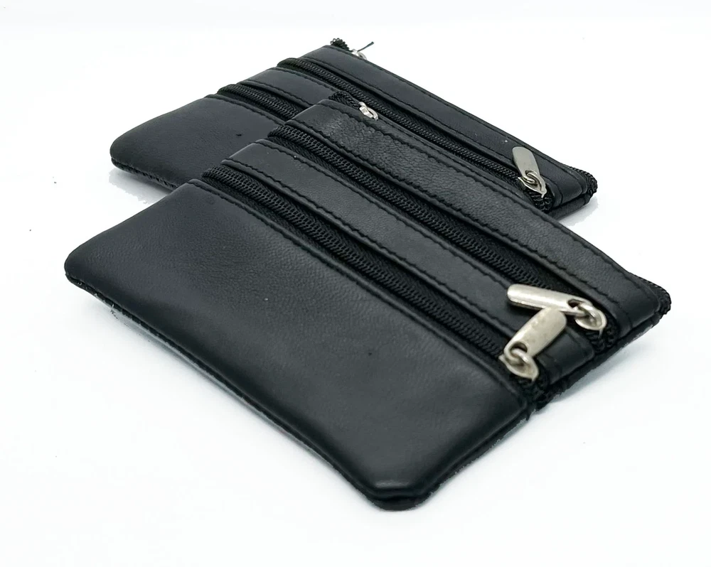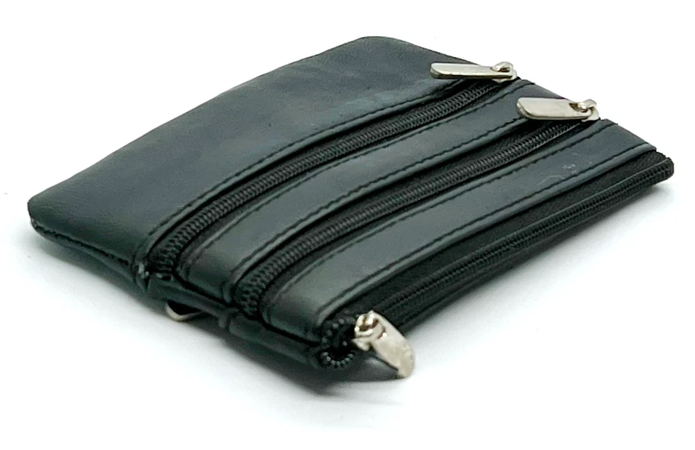 Genuine Leather Compact ID Card Holder with Keychain and Coin Pocket