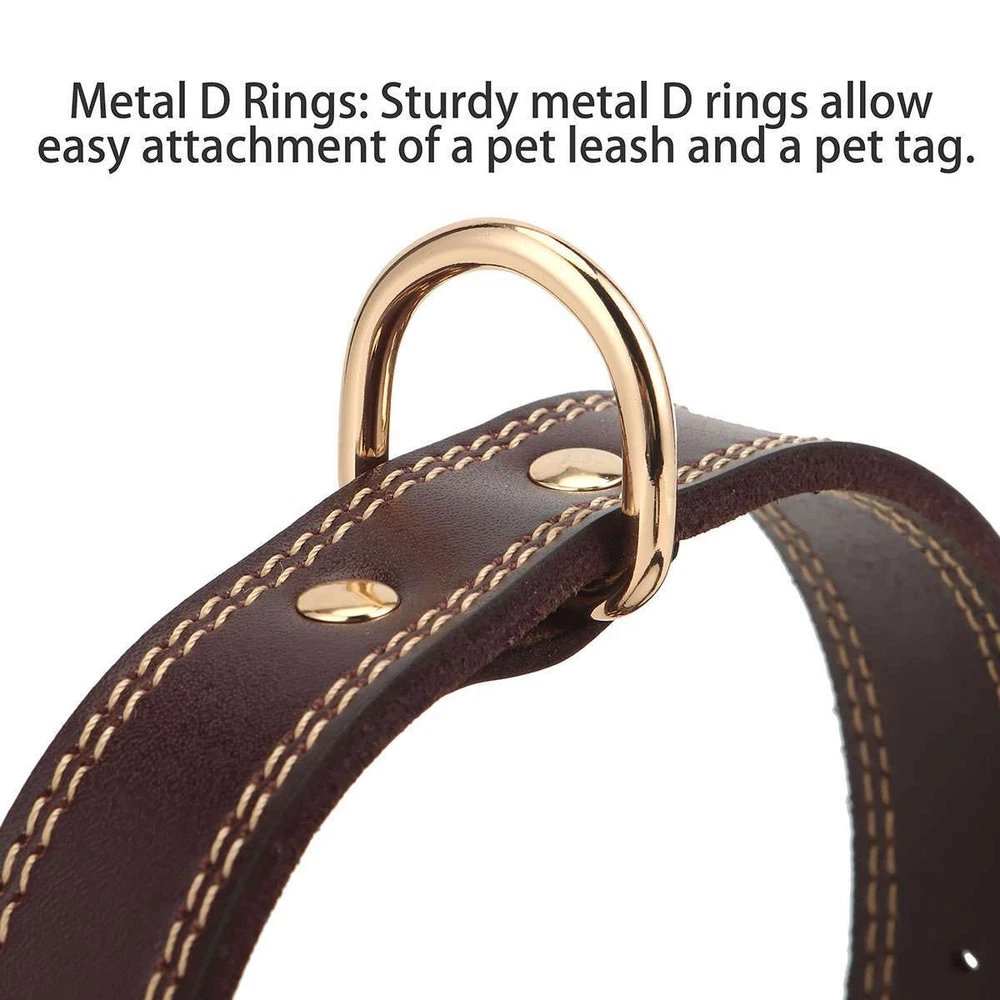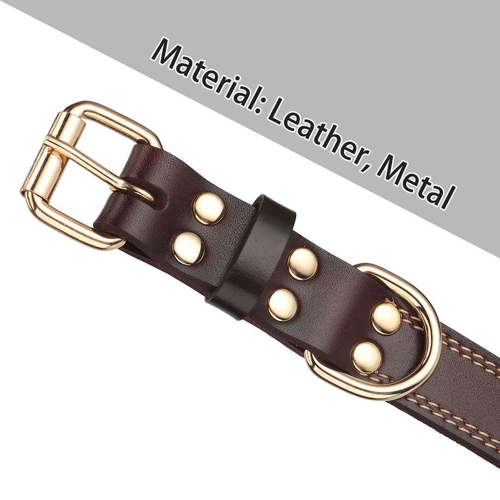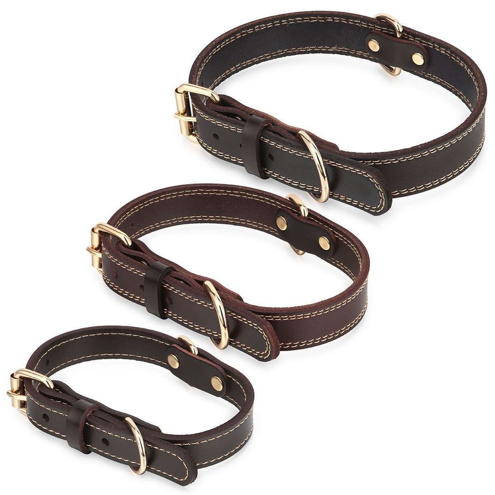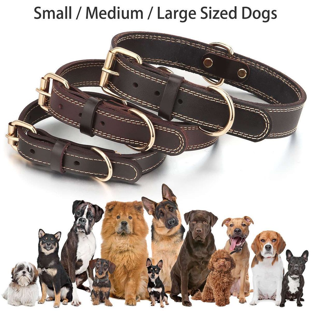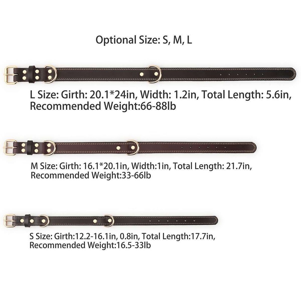Product Description Specifications: Material: Leather, Metal Color: Brown Optional Size: S, M, L S Size: Girth: 31-41cm / 12.2-16.1in, Width: 2cm / 0.8in, Total Length: 45cm / 17.7in, Recommended Weight: 7.5-15kg / 16.5-33lb M Size: Girth: 41-51cm / 16.1*20.1in, Width: 2.5cm / 1in, Total Length: 55cm / 21.7in, Recommended Weight: 15-30kg / 33-66lb L Size: Girth: 51-61cm / 20.1*24in, Width: 3cm / 1.2in, Total Length: 65cm / 25.6in, Recommended Weight: 30-40kg / 66-88lb Fit for: Small / Medium / Large Sized Pet / Pets / Dog / Dogs Pattern: Riveted Closure: Buckle Style: Elegant, Classic, Casual Features: · Classic Leather Pet Collar: This pretty leather dog dollar is in a classic brown color with shiny gold-tone metal hardware for a timeless elegant style. · Firmly Stitched & Riveted: The pet collar is firmly stitched and riveted for durability and prettiness. · Roller Pin Buckle: Pin buckle closure with a roller makes the leather pet collar easy to put on. · Metal D Rings: Sturdy metal D rings allow easy attachment of a pet leash and a pet tag. · 3 Size Options & Adjustable Fit: It is available in S, M, L 3 sizes to fit small / medium / large sized pets or dogs. The pet collar is adjustable that you can easily adjust it to a snug fit. Dog Neck Girth Measuring Tips for Your Reference: * Use a soft ruler to measure your dog’s neck circumference, snug but not tight, and then add 1-1.5 inch to the length. Notes: * Due to effect of light, camera and monitors, the item’s real color may be slightly different. * Allow slight dimension difference due to manual measurement. * Thank you for your kindly understanding. WARNING for California Residents: This product can expose you to chemicals including Diisononyl phthalate (DINP), which is known to the State of California to cause cancer. For more information, go to: https://www.p65warnings.ca.gov/. Package Includes: 1 PC Dog Collar (Others are NOT included) Payment Shipping Returns Feedback Returns and Warranty 1.PayPal is easy and safe, and we can accept PayPal payment. 2.Please do not hesitate to contact us if you have any questions of payment procedures. 3.Sales Tax: The tax is collected by eBay, not us。 1.Items dispatched to buyer's PayPal comfimed address from Monday to Saturday(Sunday & Holiday excluded) via USPS/DHL within 20 hours after payment has been received.Please check your shipping address carefully before checkout.If you want to change the address, pls kindly contact us through ebay message within three hours after payment.Otherwise, any change information may be disregarded once dispatched. 2.Items are generally shipped usually after an approved payment by the buyer(Saturday and Sunday excluded). 3.Shipping from warehouses in CA usually takes 3-5 business days to reach completion for orders within the US placed by USPS first class mail(tracking numbers available). 4.Do not provide local pick up service. 1. 30 days warranty from the purchased date. Please contact us via email before returning the defective item. 2.Our warranty does not extended to any product that are physically damaged or that are not under normal operating conditions as result of misuse or improper installation on the buyer/user's part. 3.Return items should include the original packaging and all accessories. buyers MUST contact us for the returning address. 4.In all cases, buyers pay shipping fees at their own cost to return products for exchange or refund. We will be responsible for the postage of replacements. Refund will be made upon receipt of the returned item. Pls make a note in a paper with your eBay UserID, purchased date and details of the issue you are experiencing. 1.If you are satisfied with the product you received, please leave us positive feedback and 5 scores DSR. 2.If you are dissatisfied for any reason, please donot be quick to leave negative/neutral feedback. Pls contact with us via Ebay message, We work hard to resolve any problem to make sure EVERY CUSTOMER 100% SATISFIED and always leave positive feedback to all our customer. 3.If you feel delighted with this transation, Pls give us all 5-stars. We strive for 5-star service by providing high-quality goods and perfect service. Therefore, pls take the transaction seriously. (Positive)feedback is simply what we seek for. If you have any problems about your purchase, just let us know through "MY MESSAGES". We promise that we will try our best to solve problem for you since our mission as ebay seller is make sure that you are satisfied with your every transaction. So Pls contact us first to get the best solution before leave a (Negativa)or (Neutral)feedback. 1.30 days warranty from the purchased date. Please contact us via email before returning the defective item. 2.Our warranty does not extended to any product that are physically damaged or that are not under normal operating conditions as result of misuse or improper installation on the buyer/user's part. 3.Return items should include the original packaging and all accessories. buyers MUST contact us for the returning address. 4.In all cases, buyers pay shipping fees at their own cost to return products for exchange or refund. We will be responsible for the postage of replacements. Refund will be made upon receipt of the returned item. Pls make a note in a paper with your eBay UserID, purchased date and details of the issue you are experiencing. 1.30 days warranty from the purchased date. Please contact us via email before returning the defective item. 2.Our warranty does not extended to any product that are physically damaged or that are not under normal operating conditions as result of misuse or improper installation on the buyer/user's part. 3.Return items should include the original packaging and all accessories. buyers MUST contact us for the returning address. 4.In all cases, buyers pay shipping fees at their own cost to return products for exchange or refund. We will be responsible for the postage of replacements. Refund will 