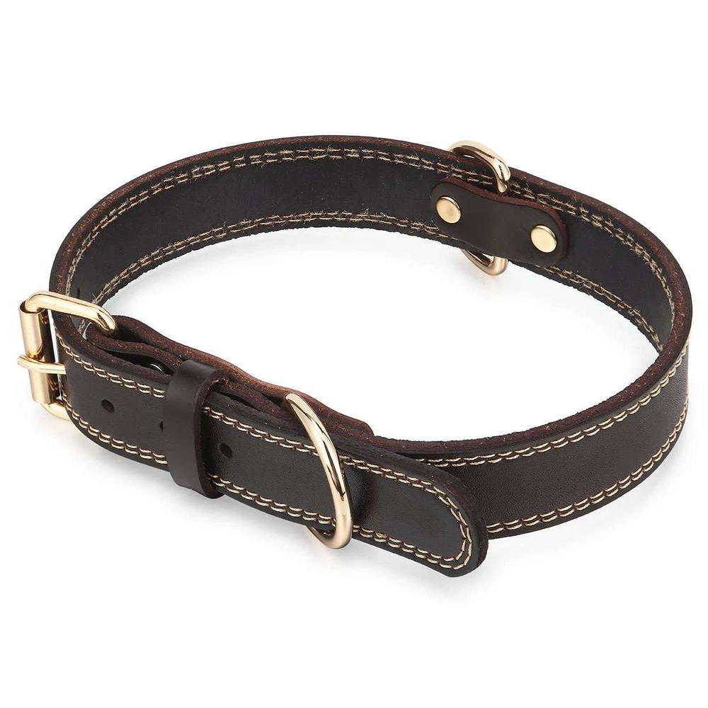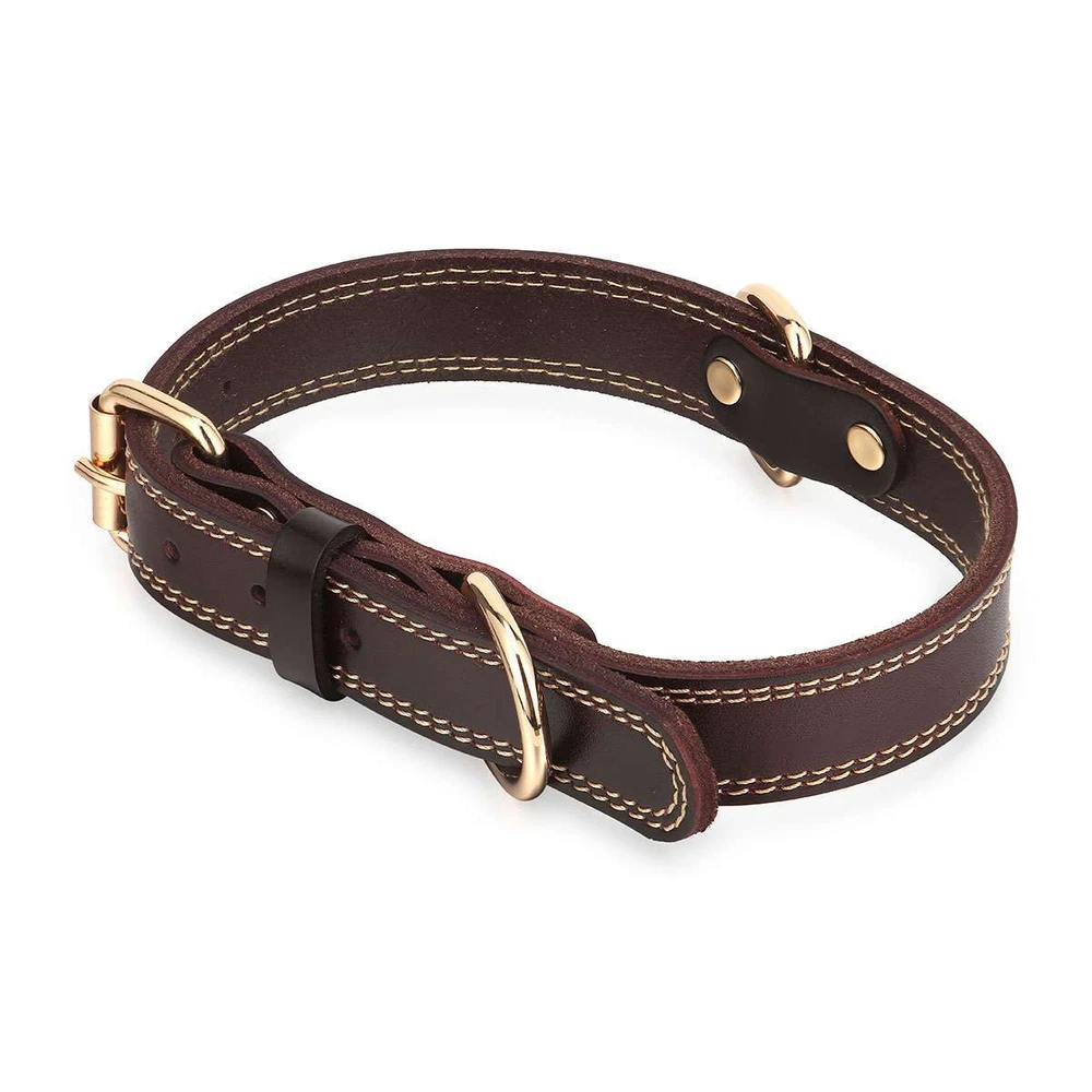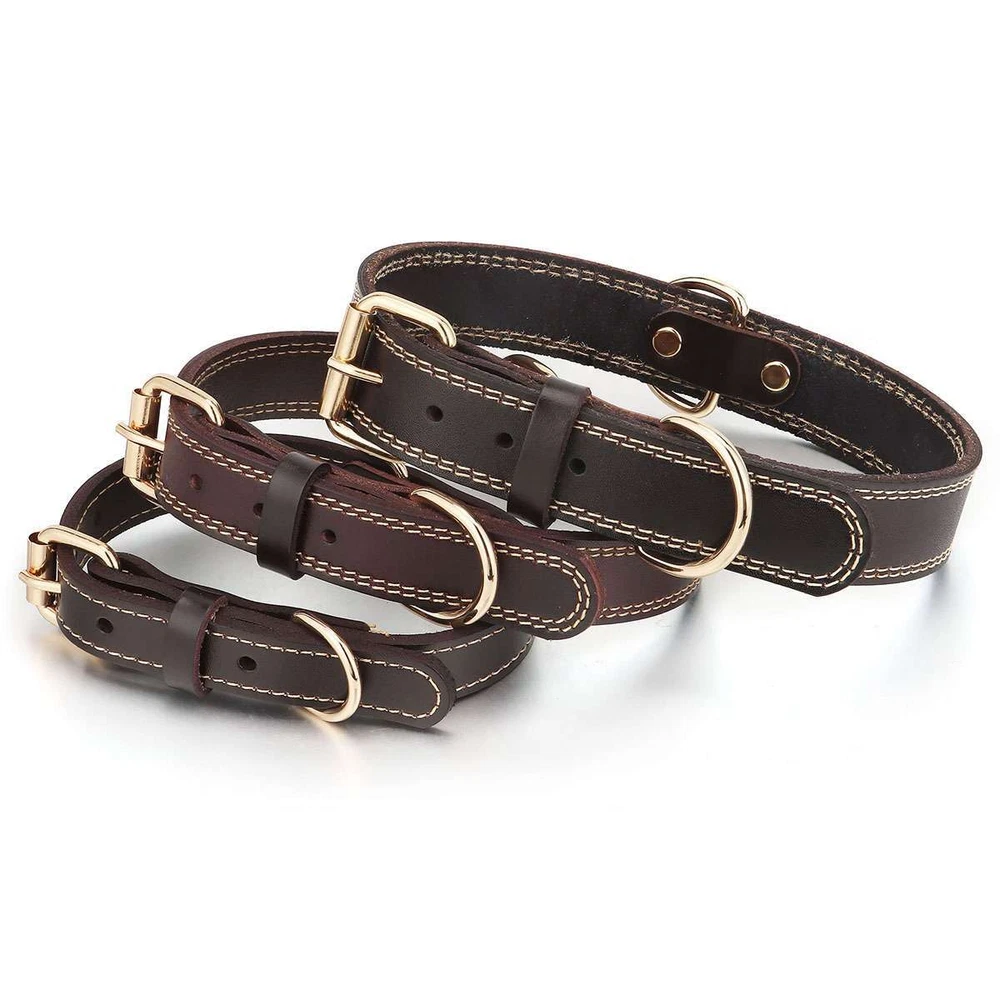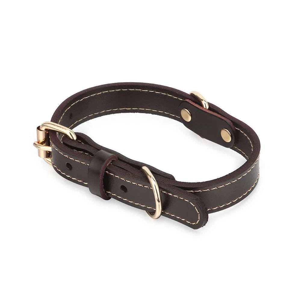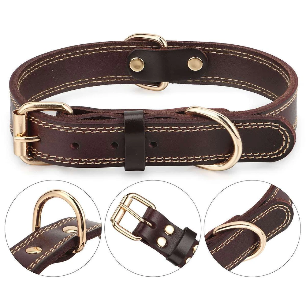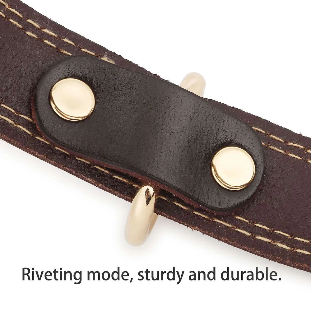 Product Description Specifications: Material: Leather, Metal Color: Brown Optional Size: S, M, L S Size: Girth: 31-41cm / 12.2-16.1in, Width: 2cm / 0.8in, Total Length: 45cm / 17.7in, Recommended Weight: 7.5-15kg / 16.5-33lb M Size: Girth: 41-51cm / 16.1*20.1in, Width: 2.5cm / 1in, Total Length: 55cm / 21.7in, Recommended Weight: 15-30kg / 33-66lb L Size: Girth: 51-61cm / 20.1*24in, Width: 3cm / 1.2in, Total Length: 65cm / 25.6in, Recommended Weight: 30-40kg / 66-88lb Fit for: Small / Medium / Large Sized Pet / Pets / Dog / Dogs Pattern: Riveted Closure: Buckle Style: Elegant, Classic, Casual Features: · Classic Leather Pet Collar: This pretty leather dog dollar is in a classic brown color with shiny gold-tone metal hardware for a timeless elegant style. · Firmly Stitched & Riveted: The pet collar is firmly stitched and riveted for durability and prettiness. · Roller Pin Buckle: Pin buckle closure with a roller makes the leather pet collar easy to put on. · Metal D Rings: Sturdy metal D rings allow easy attachment of a pet leash and a pet tag. · 3 Size Options & Adjustable Fit: It is available in S, M, L 3 sizes to fit small / medium / large sized pets or dogs. The pet collar is adjustable that you can easily adjust it to a snug fit. Dog Neck Girth Measuring Tips for Your Reference: * Use a soft ruler to measure your dog’s neck circumference, snug but not tight, and then add 1-1.5 inch to the length. Notes: * Due to effect of light, camera and monitors, the item’s real color may be slightly different. * Allow slight dimension difference due to manual measurement. * Thank you for your kindly understanding. WARNING for California Residents: This product can expose you to chemicals including Diisononyl phthalate (DINP), which is known to the State of California to cause cancer. For more information, go to: https://www.p65warnings.ca.gov/. Package Includes: 1 PC Dog Collar (Others are NOT included) Payment Shipping Returns Feedback Returns and Warranty 1.PayPal is easy and safe, and we can accept PayPal payment. 2.Please do not hesitate to contact us if you have any questions of payment procedures. 3.Sales Tax: The tax is collected by eBay, not us。 1.Items dispatched to buyer's PayPal comfimed address from Monday to Saturday(Sunday & Holiday excluded) via USPS/DHL within 20 hours after payment has been received.Please check your shipping address carefully before checkout.If you want to change the address, pls kindly contact us through ebay message within three hours after payment.Otherwise, any change information may be disregarded once dispatched. 2.Items are generally shipped usually after an approved payment by the buyer(Saturday and Sunday excluded). 3.Shipping from warehouses in CA usually takes 3-5 business days to reach completion for orders within the US placed by USPS first class mail(tracking numbers available). 4.Do not provide local pick up service. 1. 30 days warranty from the purchased date. Please contact us via email before returning the defective item. 2.Our warranty does not extended to any product that are physically damaged or that are not under normal operating conditions as result of misuse or improper installation on the buyer/user's part. 3.Return items should include the original packaging and all accessories. buyers MUST contact us for the returning address. 4.In all cases, buyers pay shipping fees at their own cost to return products for exchange or refund. We will be responsible for the postage of replacements. Refund will be made upon receipt of the returned item. Pls make a note in a paper with your eBay UserID, purchased date and details of the issue you are experiencing. 1.If you are satisfied with the product you received, please leave us positive feedback and 5 scores DSR. 2.If you are dissatisfied for any reason, please donot be quick to leave negative/neutral feedback. Pls contact with us via Ebay message, We work hard to resolve any problem to make sure EVERY CUSTOMER 100% SATISFIED and always leave positive feedback to all our customer. 3.If you feel delighted with this transation, Pls give us all 5-stars. We strive for 5-star service by providing high-quality goods and perfect service. Therefore, pls take the transaction seriously. (Positive)feedback is simply what we seek for. If you have any problems about your purchase, just let us know through "MY MESSAGES". We promise that we will try our best to solve problem for you since our mission as ebay seller is make sure that you are satisfied with your every transaction. So Pls contact us first to get the best solution before leave a (Negativa)or (Neutral)feedback. 1.30 days warranty from the purchased date. Please contact us via email before returning the defective item. 2.Our warranty does not extended to any product that are physically damaged or that are not under normal operating conditions as result of misuse or improper installation on the buyer/user's part. 3.Return items should include the original packaging and all accessories. buyers MUST contact us for the returning address. 4.In all cases, buyers pay shipping fees at their own cost to return products for exchange or refund. We will be responsible for the postage of replacements. Refund will be made upon receipt of the returned item. Pls make a note in a paper with your eBay UserID, purchased date and details of the issue you are experiencing. 1.30 days warranty from the purchased date. Please contact us via email before returning the defective item. 2.Our warranty does not extended to any product that are physically damaged or that are not under normal operating conditions as result of misuse or improper installation on the buyer/user's part. 3.Return items should include the original packaging and all accessories. buyers MUST contact us for the returning address. 4.In all cases, buyers pay shipping fees at their own cost to return products for exchange or refund. We will be responsible for the postage of replacements. Refund will 