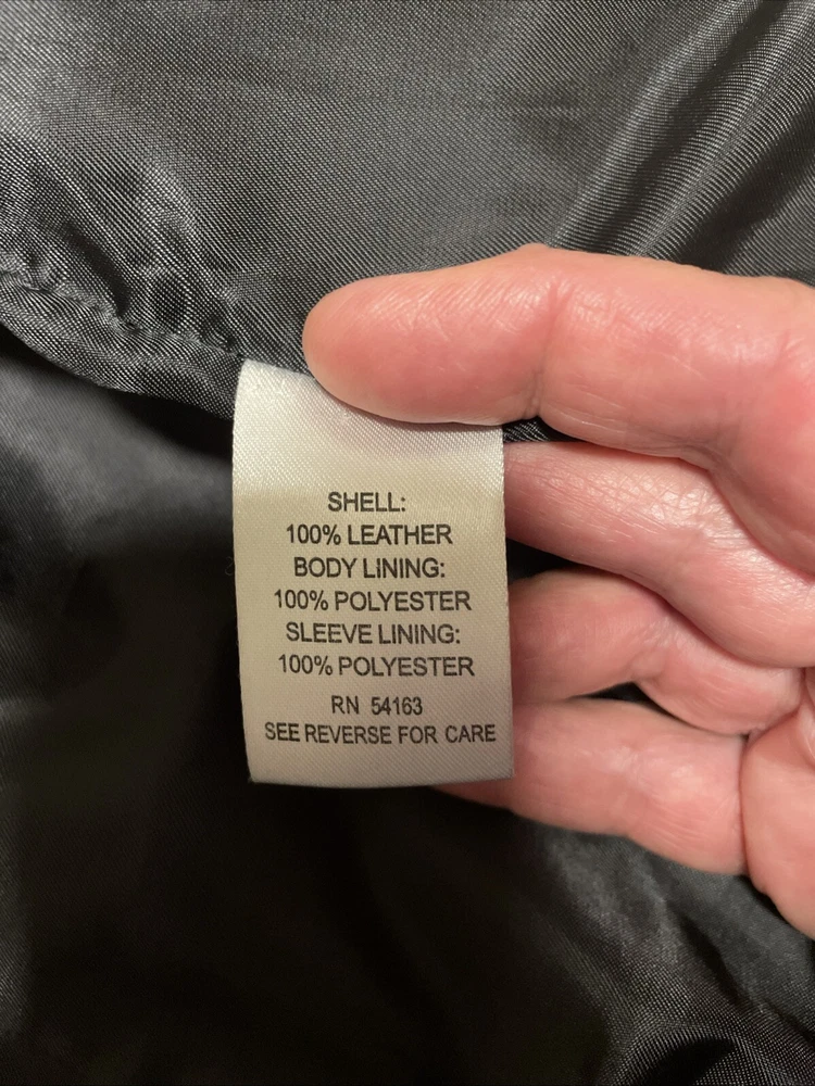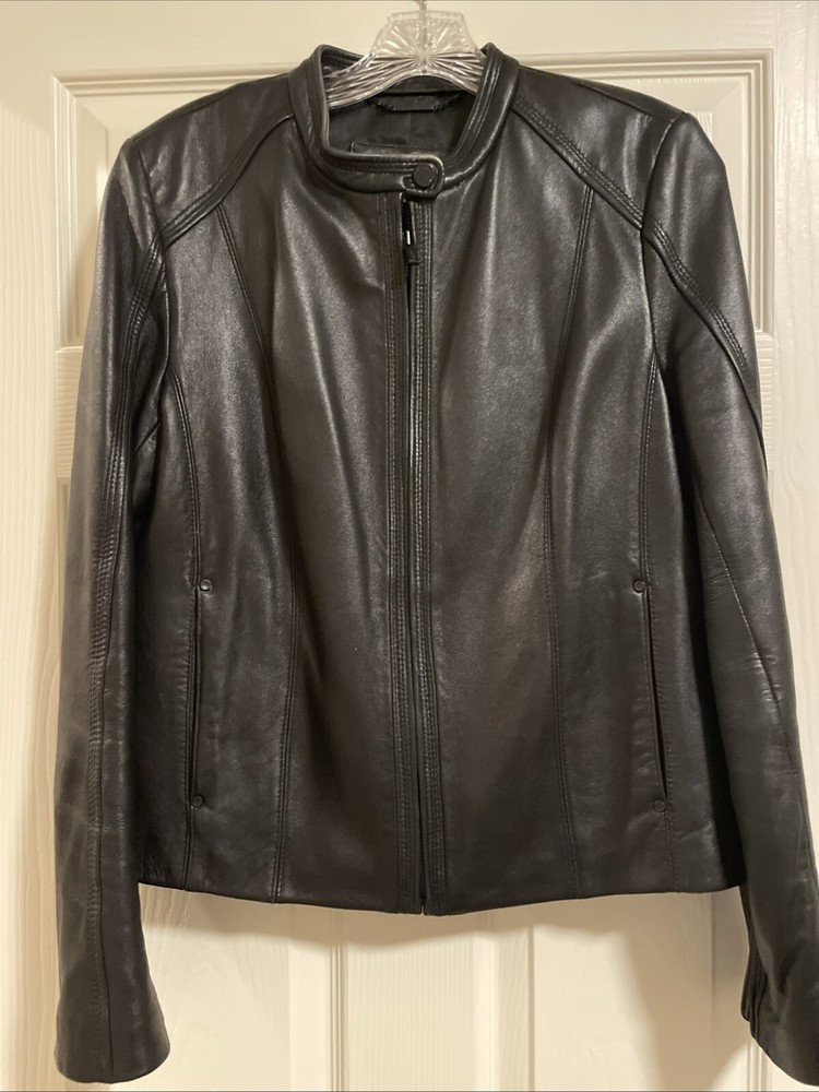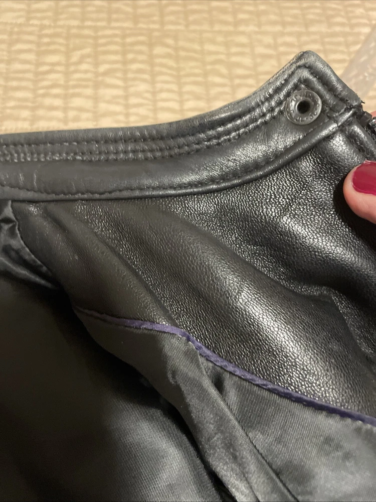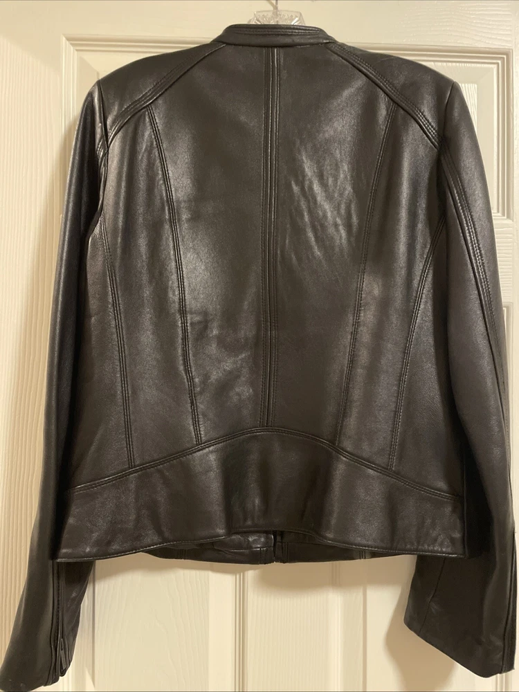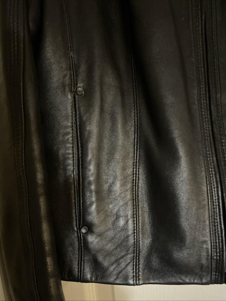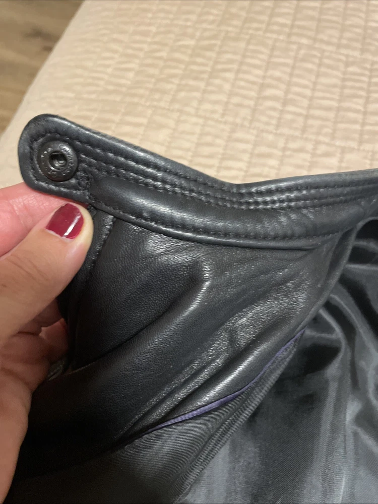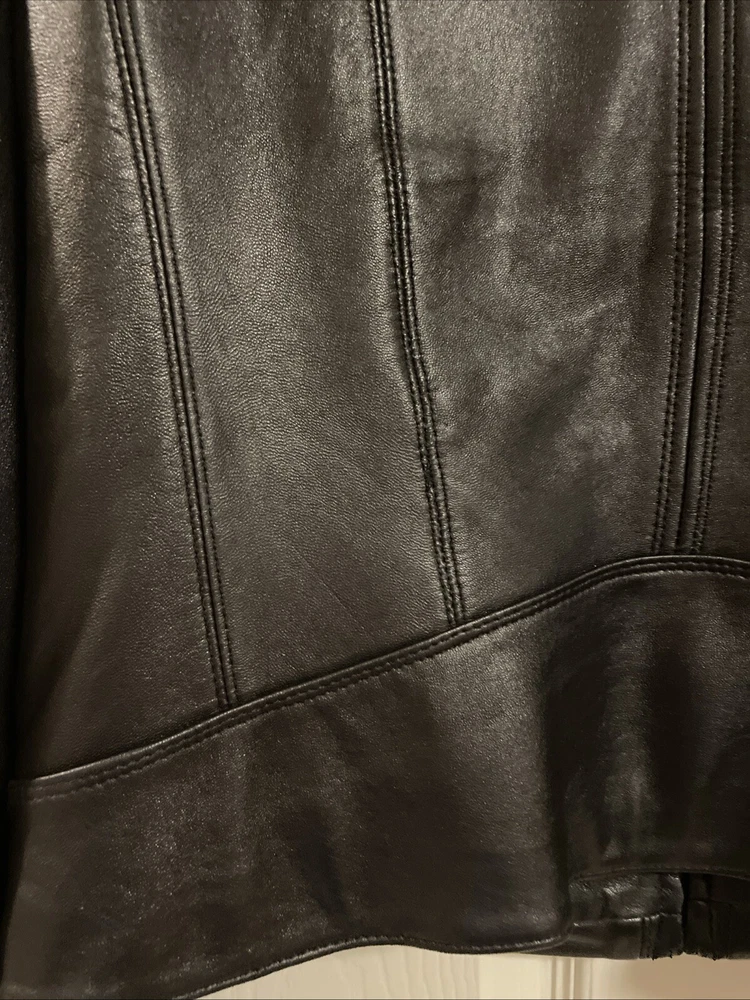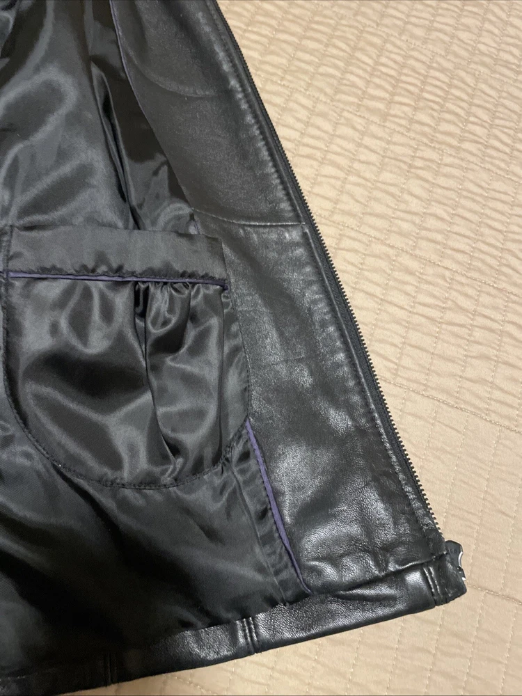 Upgrade your wardrobe with this stylish and versatile Calvin Klein jacket. Made from 100% genuine leather, this black zip-up jacket is perfect for travel, business, or casual occasions. The jacket features two side pockets, a full zip closure, and 2 inner pockets for added convenience. The classic style makes this jacket a timeless addition to your wardrobe. Available in size L, this regular fit jacket is suitable for women who want to look fashionable and feel comfortable. Pit-to-pit measurements 18 inches. Length 22 inches ( measured in the center of the back top to bottom). Pre loved excellent condition.