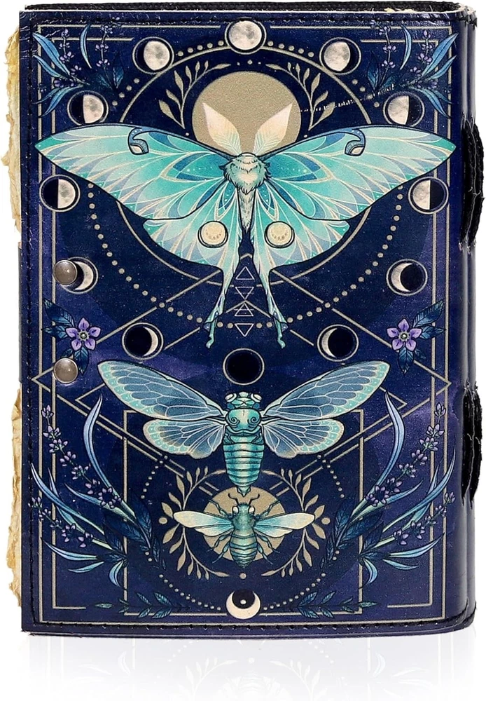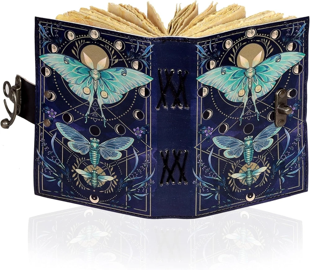BEAUTIFULLY CRAFTED: Our handmade artisan leatherbound spellbook grimoire journals are crafted from genuine leather. The black colouring gives it a beautiful antique vintage feel. Being hand-made from natural leather. The cover features a beautiful gold designing.. IDEAL SIZE & THICK PAPER: Compact 7"X5" size , easy to carry around or slip into a bag; and not so small that you can’t express any creativity - 240 pages of smooth craft paper allowing the pen to glide effortlessly across the page PERFECT FOR GIVING: Suitable for both men or women to write in, this locking diary daily travelers notebook is perfect for an avid writer, or Harry Potter fan looking for a magic spell book. Ideal to give as a birthday gift, valentines, halloween, graduation or wedding anniversary present. MANY USES - This aesthetic Lovers Journal Can be used as a Hocus Pocus gifts , the lovers tarot journal, gothic notebook, skull journal, spell books halloween decorations, book of spells halloween decor. grimoire spell book, drawing or sketching and compact for carrying in your bag. Ideal for alternative Artist Sketchbooks, Photo Album, Traveling Notes, Business Executive, Logbook, hocus pocus spell book , Journalists, Food Planner, old spell notebook, antique handmade skull journal