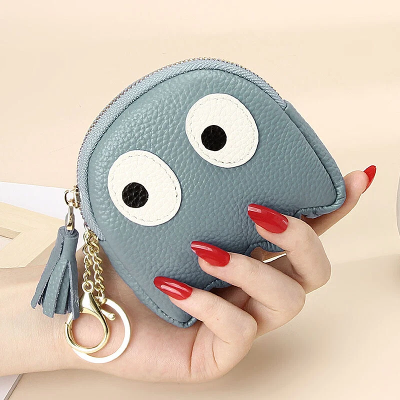 Reliable Quality: Top cowhide genuine leather soft to touch and easy to clean up, purely handmade. Professional Design: Small size 10*10*1.5cm and the weight is about 64g. Deft Design: 1 main pocket, 1 card slot,2 key chains, you can arrange credit card, driver's license, bank card, cash, change, lipstick, keys, etc. Attractive Design: Lovely cartoon ghost shape design. Reliable Reputation: If you are not satisfied with our product or service for any reason, please contact us, we will resolve it.