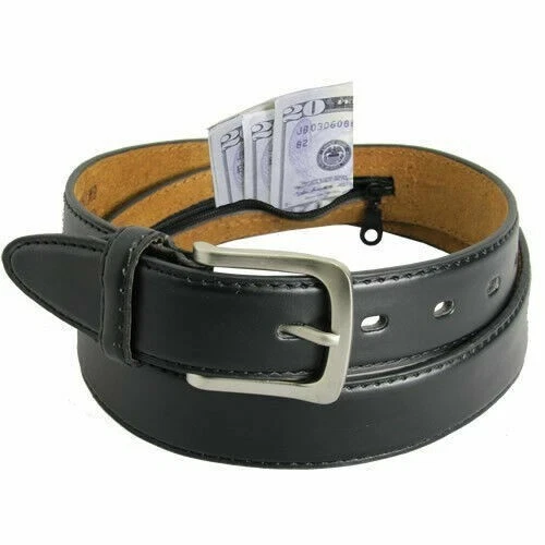The zipper size inside the belt is about 14 inch long ! Men's Genuine Leather Metal Buckle Jean Casual Dress Belt with super light weight, and sustainable materials. Secret Pocket, Zipper Inside, Stylish Buckle, Money Compartment, Safe belt, Hide cash Featuring our newest high quality genuine leather casual belt, 4 Sizes :S. M .L .XL .XXL ,1.1/4 Inch Wide Color Available: Dark Brown Product Description: The perfect gifting option for any occasion, including but not limited to, birthdays, anniversaries, and Christmas! Purchase one (or more) today and bring a smile to your own (or someone else’s) face! A Genuine Leather Money belt. 1.1/4" inch-wide belt standard width for all dressy and casual belt loops not too wide or narrow. Smooth sleek sturdy leather belt with straight accurate stitching and 5 holes in the belt in right placement. Brushed silver finish scratch-resistant buckle is sturdy enough to hold up your pants. It's a good stylish leather belt. Very hard to find belt. A REALLY GREAT BUY. Genuine Leather 1.1/4-inch-wide belt Zipper pocket Safe & Secure Perfect for travelling Belt Size :S M L XL XXL Smooth sleek sturdy leather belt 5 holes in the belt in right placement Brushed silver finish scratch-resistant buckle Makes a great gift