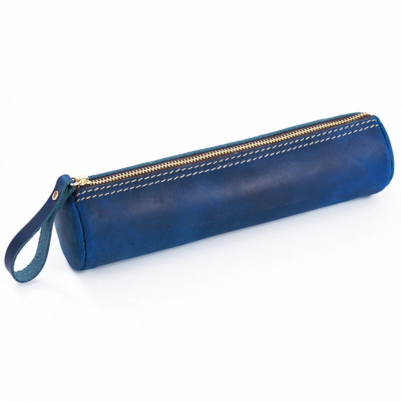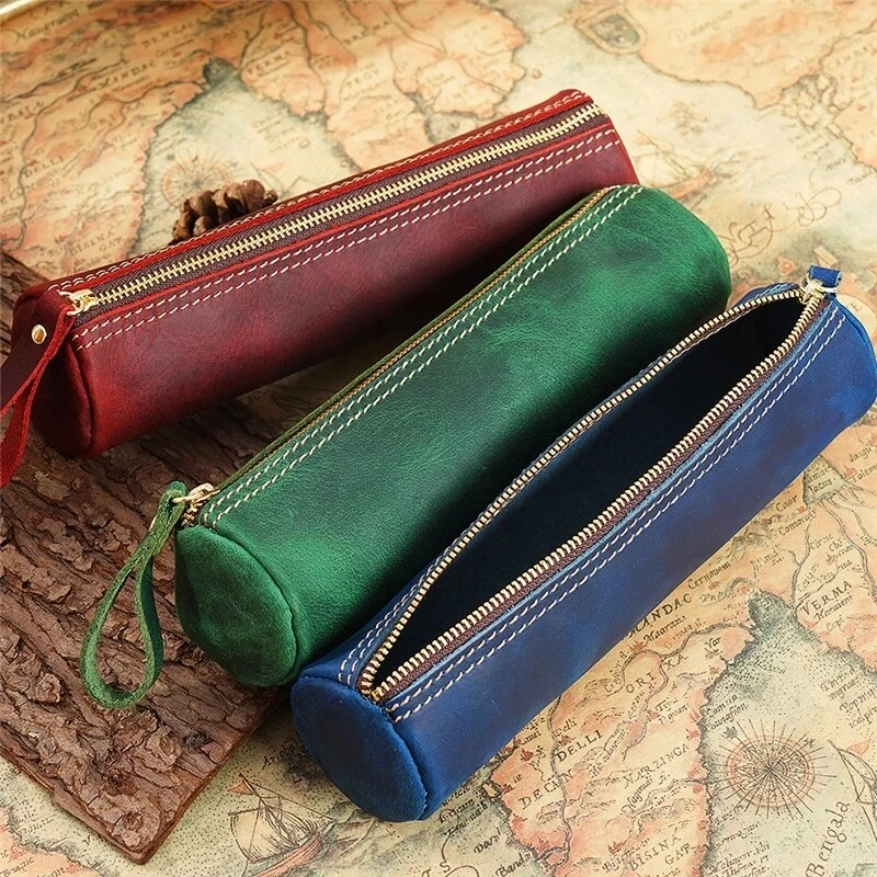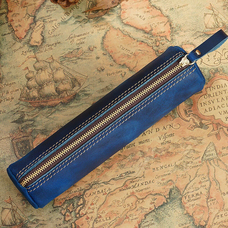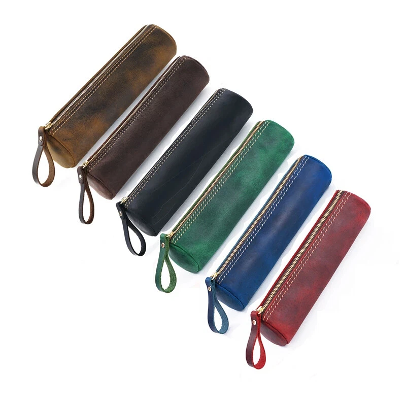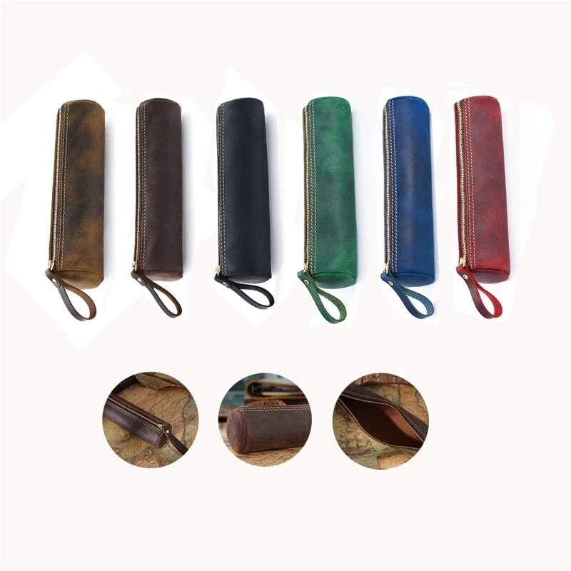 Genuine Leather Pen Pencil Case Office School Stationery Pen Storage Bag Holder