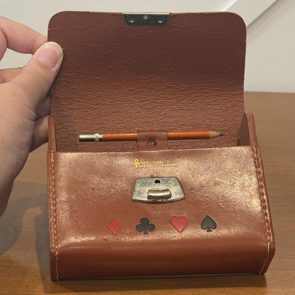 Real Hide Made in England Playing Card Case w/ Pencil Very good used condition, does have some marks on bottom and front. See photos for more details Fast and secure shipping daily