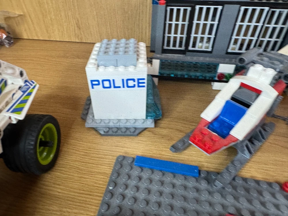 LEGO City Police Job Lot – Station, Helicopter, Plane, Vehicles, 7 Minifigures & 2 Dogs. A fantastic mixed LEGO City Police bundle – perfect for expanding your city layout or for imaginative play. Includes: Police station building Police helicopter Police plane Large police SUV Police van (02) Police quad bike & motorbike Portable jail / toilet unit 7 LEGO minifigures (police officers, pilots, criminals, etc.) 2 LEGO police dogs Extra accessories All pieces shown in the photos are included. Used but in good condition. May be missing some small parts compared to the original sets.