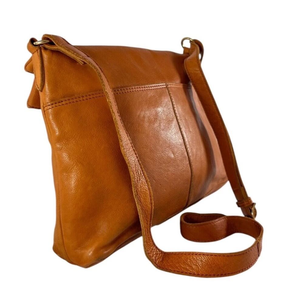 Genuine MARGOT Tan Pebbled Leather Crossbody Shoulder Bag
