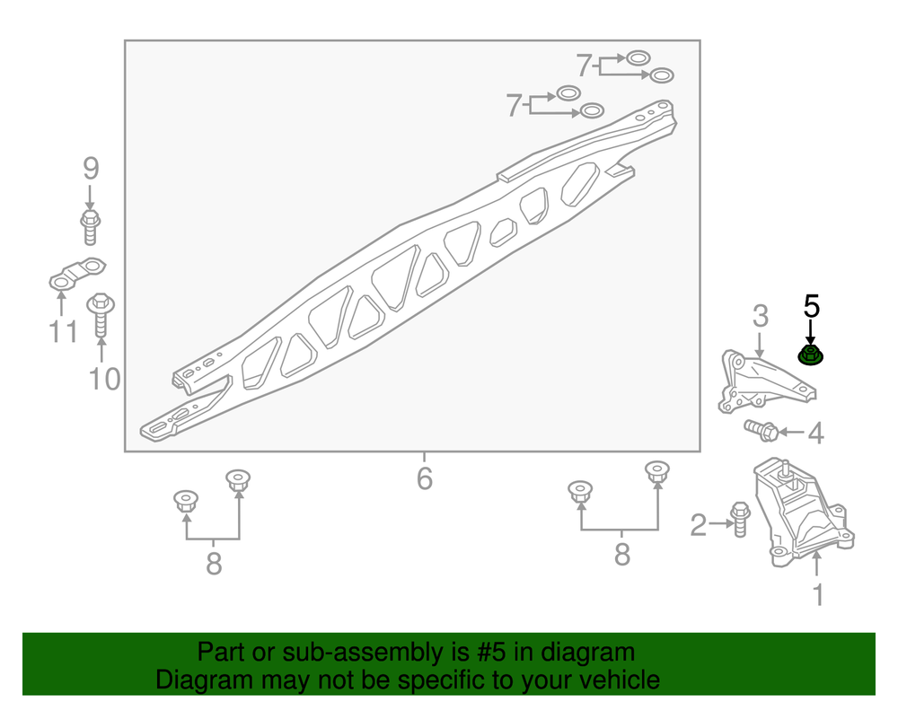 PATRICK MAZDA Genuine Mazda Upper Mount Nut 9YB0-41-033 Part can be found as # 5 in the diagram above Genuine Mazda Parts Product Description Awd, 2.5L turbo. Without awd. Japan built. Awd, 2.2L diesel. Fwd, 2.2L diesel. Specifications Brand Mazda Manufacturer Part Number 9YB0-41-033 SKU 9YB0-41-033 Product Genuine Mazda Upper Mount Nut 9YB0-41-033 ONLY PART REFERENCE #5 ON THE DIAGRAM IS INCLUDED Terms and Conditions Thank you for shopping with us. Please find our policies below. If you have any other questions, please don't hesitate to contact us. Shipping Terms In stock orders ship within 24 hours. Weekend orders will be processed the next business day. If a part is not in stock and must be ordered from the manufacturer, it usually takes 2-6 days to arrive to us and will be promptly shipped to you. Most of the orders are shipped complete within 2-6 business days. Oversized shipments will be additional; you will be contacted prior to shipping for approval. We cannot guarantee transit times for ground and oversize orders. Shipping Carrier substitutions may be made at our determination in an attempt to reduce shipping cost to the customer. We do not ship internationally. In the unlikely event that a part has been placed on backorder or discontinued, we will do our best to try and find one for you as quickly as possible. We do not ship COD orders. Return Policy Contact us to arrange for any returns. A copy of the invoice will need to be included with the return. Parts must be resaleable and in the original packaging. We cannot take back used parts. We cannot take back installed or tried parts. Electrical parts are not returnable. We do reserve the right to refuse and return any parts we find have been installed, are used or do not meet the above criteria. Return request need to be within 30 days of receipt. Cancellation Policy An order or a portion of an order may be cancelled up until the time it is shipped and no longer in our possession. Home • Newsletter Signup • Contact Us Copyright © 2026 PATRICK MAZDA , All rights reserved. Solution by RevolutionParts, Inc. :: Design by OCDesignsOnline