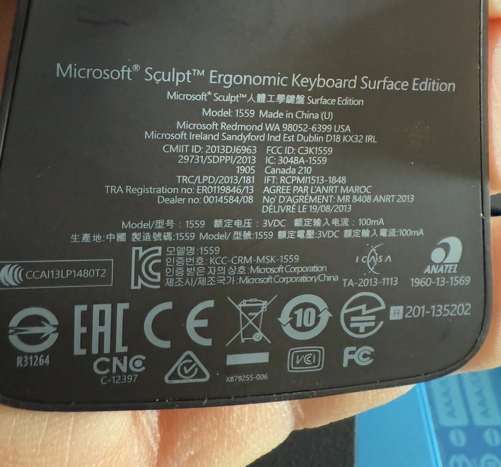 Genuine Microsoft Sculpt Ergonomic Wireless Keyboard 1559 - No Receiver/USB Included