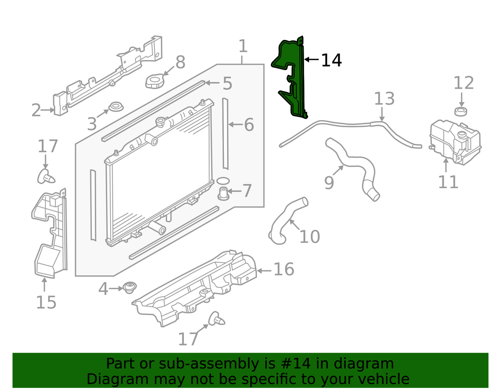Brand: Nissan SKU: 21558-6FL2A Manufacturer Warranty: 1 Year Manufacturer Part Number: 21558-6FL2A Make: Nissan Model: Rogue Parts Included: ONLY PART REFERENCE #14 ON THE DIAGRAM IS INCLUDED Universal Fitment: Direct Replacement Country of Origin: Japan Product Name: Genuine Nissan Air Guide 21558-6FL2A Genuine OEM: Yes Year: 2017