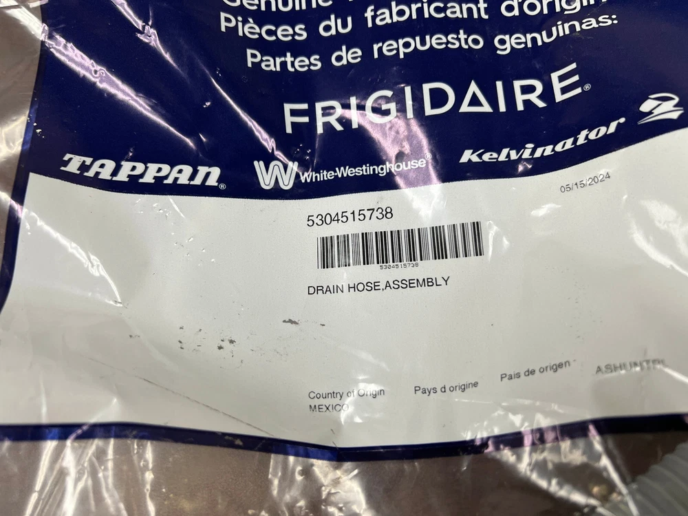 Ensure your appliances are functioning at their best with the genuine OEM Electrolux Frigidaire Drain Hose, part number 5304515738. Crafted from durable plastic, this hose is designed to fit seamlessly with your compatible Electrolux or Frigidaire washing machine models, offering a reliable solution for water drainage. Measuring 5 inches in height, 15 inches in length, and 15 inches in width, this gray washer drain hose meets the high standards of quality and compatibility you expect from the Frigidaire brand. Keep your laundry routine efficient and hassle-free with this essential appliance accessory.