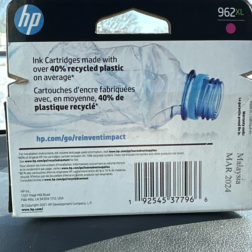 Ensure your printouts are vibrant and your documents are sharp with the HP 962XL Magenta Ink Cartridge. Specifically designed for compatibility with HP printers, this genuine OEM cartridge delivers consistent, high-quality performance. Whether printing at home or in the office, the magenta ink offers bold, saturated color that brings your projects to life. The cartridge, with model number 3JA01AN, is brand new and sealed, guaranteeing that you receive the full, unused capacity. It's an ideal choice for those who demand reliability and consistent results. This particular cartridge has a promise of March 2024, ensuring that you'll have fresh, top-performing consumable for your printing needs.
