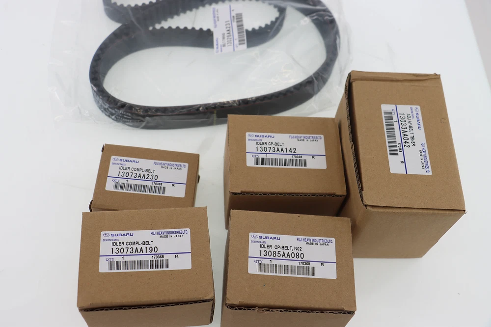Store Categories Store Categories Other Genuine OEM Subaru Timing Belt Kit for Forester Impreza Outback Legacy 1999-2012 Product Description Brand Subaru Items Included Timing Belt,Timing Belt Idler,Timing Belt Tensioner Manufacturer Part Number 13-028AA231, 13028AA230,,13073AA142, 13085AA100 Superseded Part Number 13-028AA231, 13028AA230,,13073AA142, 13085AA100 Type Timing Belt Kit Interchange Part Number 13-028AA231, 13028AA230,,13073AA142, 13085AA100 OE/OEM Part Number 13-028AA231, 13028AA230,,13073AA142, 13085AA100 Manufacturer Warranty 1 Year Subaru Timing Belt Kit for Forester Impreza Outback Legacy Features: Interchange Part Number: 13028AA230 13085AA100 Other Part Number: 13-028AA231 Includes The Following New Parts: 1 x Subaru Timing Belt 13028-AA231 1 x Subaru Tensioner Assembly 13033AA042 1 x Subaru Bearing, Full Type 13073AA190 1 x Subaru Longer Bolt 13073AA230 1 x Subaru Bearing, Smooth 13073AA142 1 x Subaru Bearing, Cogged 13085AA080 Picture shows actual parts for reference. Compatible Model: For Subaru Impreza 1999-2011 For Subaru Legacy 2010-2013 For Subaru Forester 1999-2011 For Subaru Outback 2010-2013 Package Includes: As pictures shows. Please check pictures for more details. Shipping Policy Returns Policy Shipping Policy We process and dispatch your purchase within 1 business day after payment clearance. Please contact us if you have special requirements (combination of packaging etc.). We offer free USPS First Class Package as default. If you choose express post, we charge a flat rate and we Express Post, which can be delivered in 1-3 business days, depending on your location. If you require another company, please contact us. Returns Policy Please contact us first when return, exchange and refund is required. Any direct return of purchased items will not be processed. Buyer is responsible for the return cost. Change-of-mind return can only be accepted within 8 days after purchase. All other returns can be accepted in 30days. Copyright © 2023 Dianxiaomi