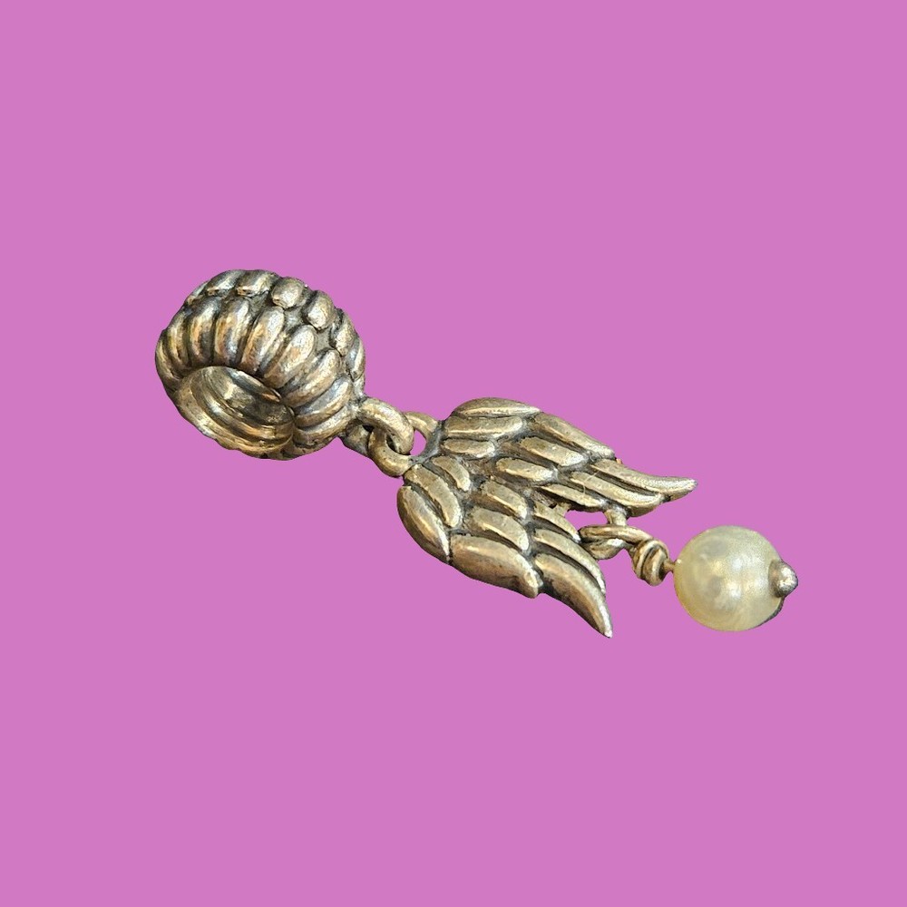 This is a genuine PANDORA charm featuring angel wings and a white pearl . Made of sterling silver. Pre owned. Great condition. This will arrive in a velvet pouch.