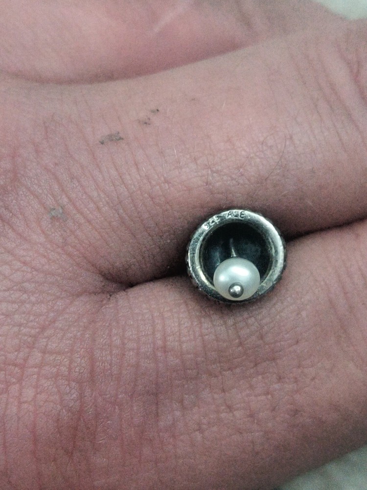 $ 10.55Authentic 925 Silver ALE Pandora White Murano Glass Bead Charm with Gray Dots